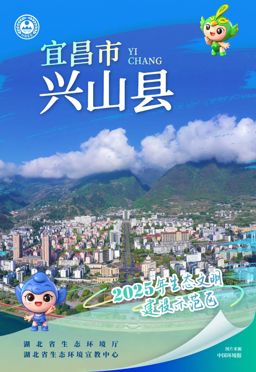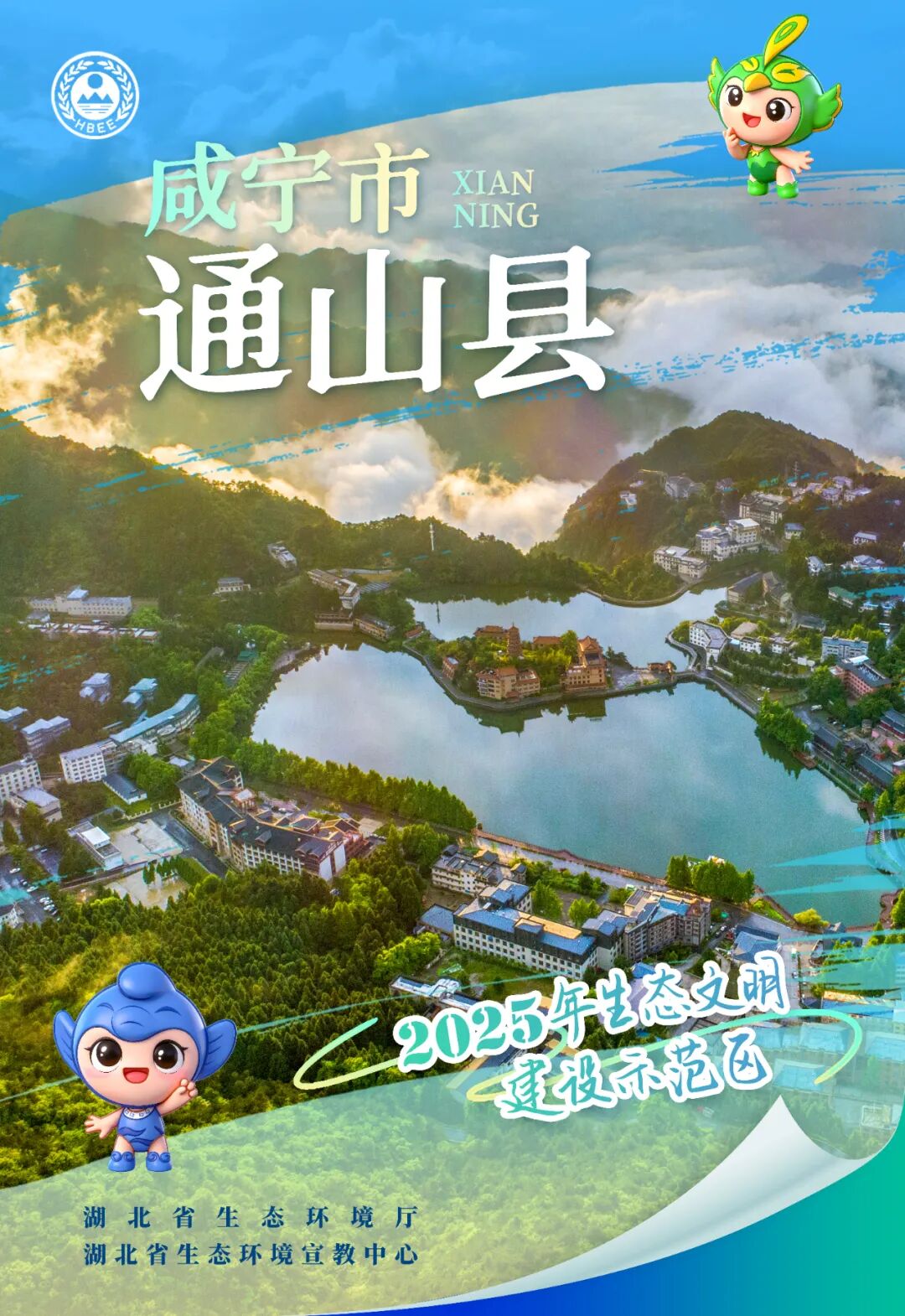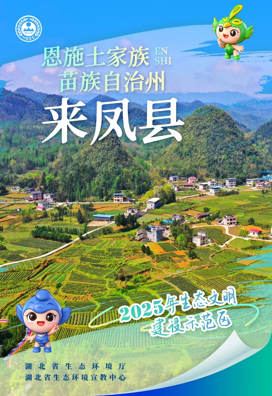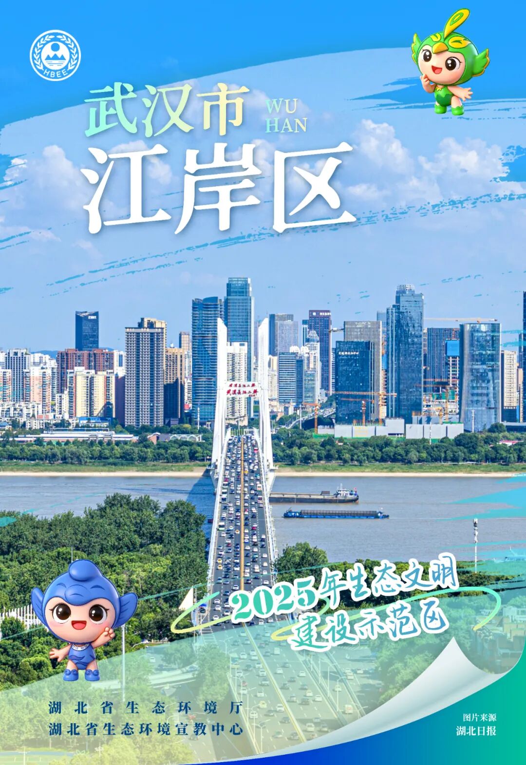2025年生态文明建设示范区:武汉市江岸区、宜昌市兴山县、咸宁市通山县、恩施土家族苗族自治州来凤县。