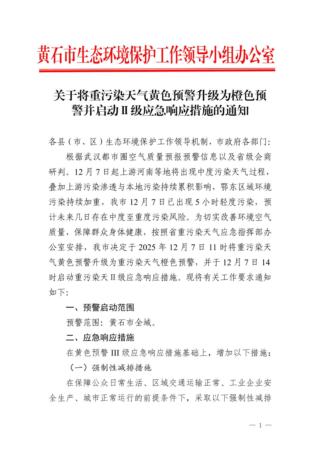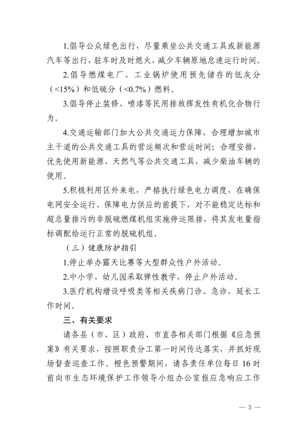 关于将重污染天气黄色预警升级为橙色预警并启动Ⅱ级应急响应措施的通知