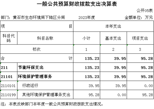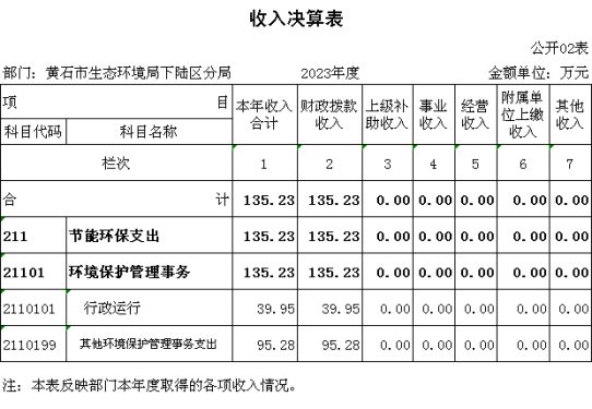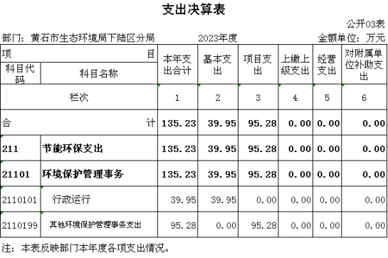 第二部分黄石市生态环境局下陆区分局2023年度部门决算表