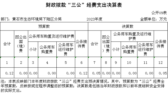 2023年度“三公”经费财政拨款支出全年预算为0.12万元,支出决算为0.05万元,完成全年预算的41.7%。较上年支出0.05万元相比持平,无增减变化。决算数小于全年预算数的主要原因:单位压缩支出,严格控制经费开支。决算数较上年支出持平的主要原因:单位压缩支出,严格控制经费开支。