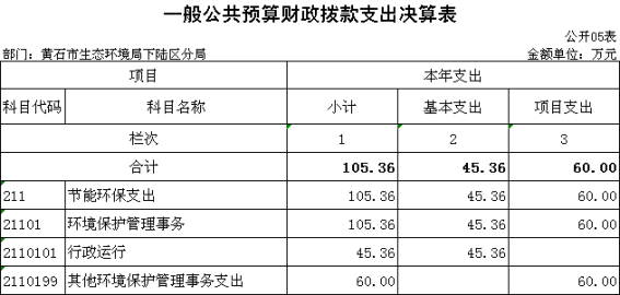 1.节能环保(类)支出105.36万元,占100%。主要是用于单位人员经费、公用经费及项目经费开支。