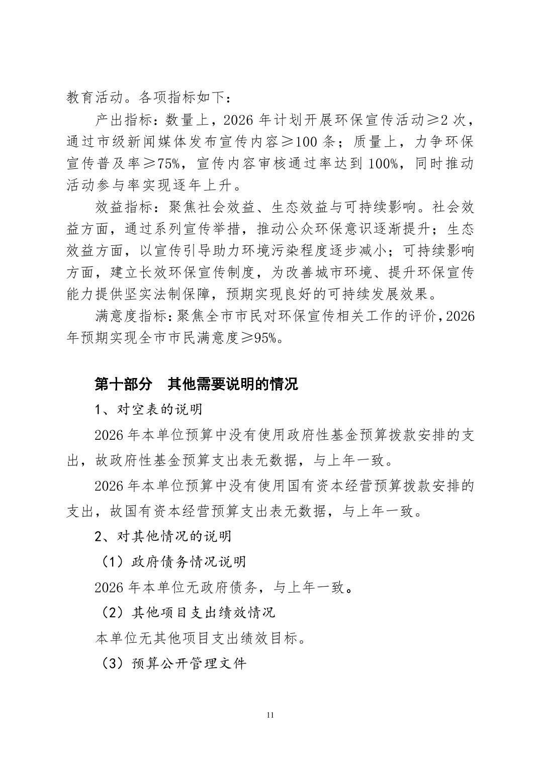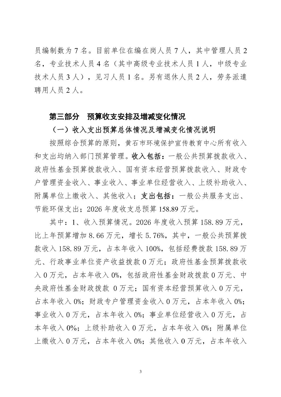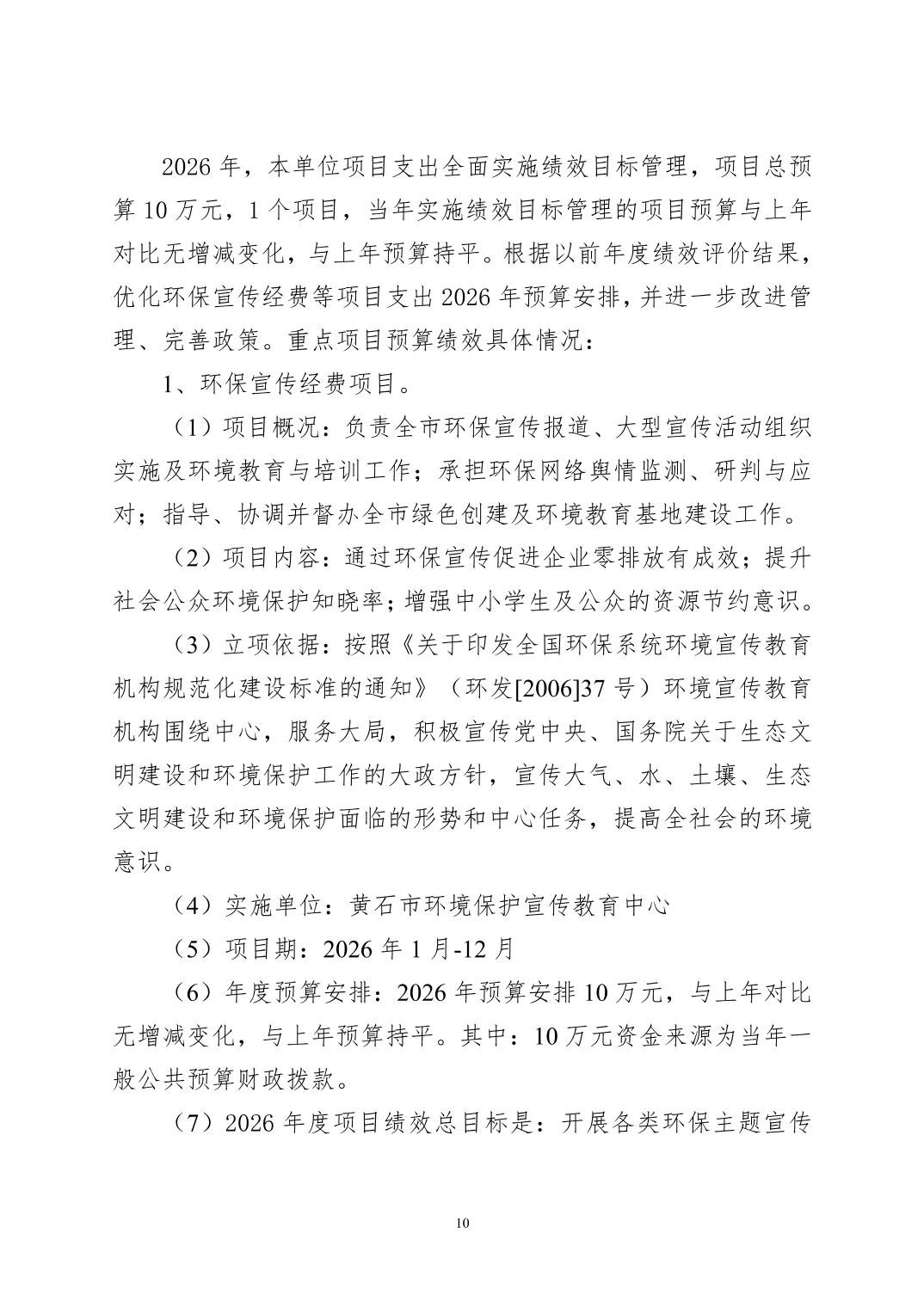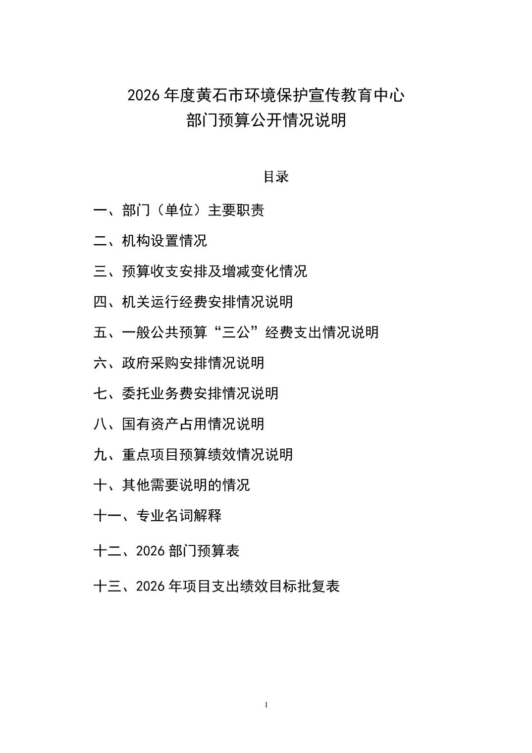 2026年度黄石市环境保护宣传教育中心部门预算公开情况说明