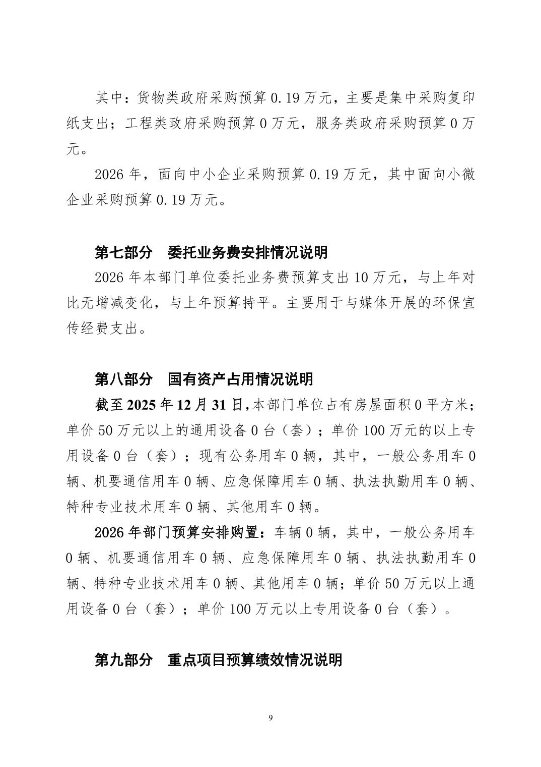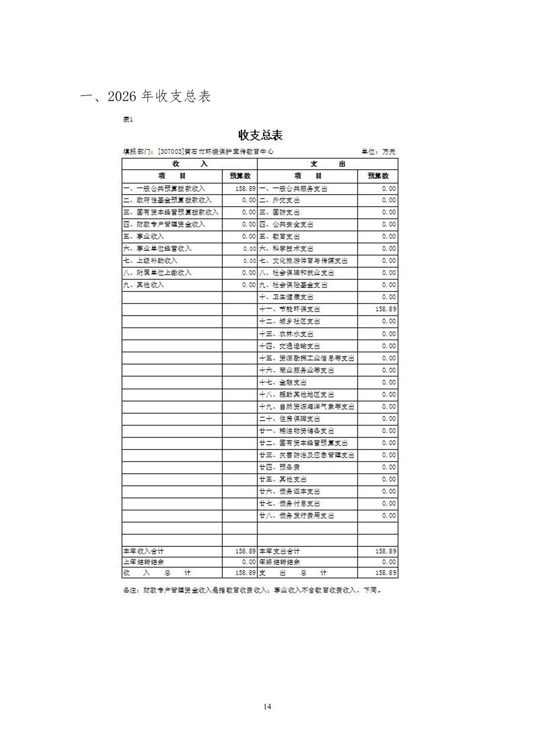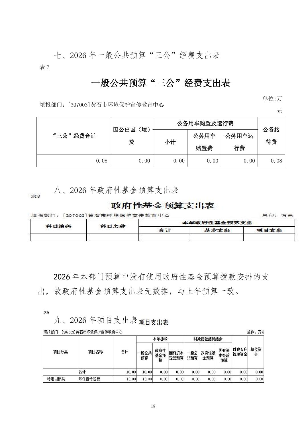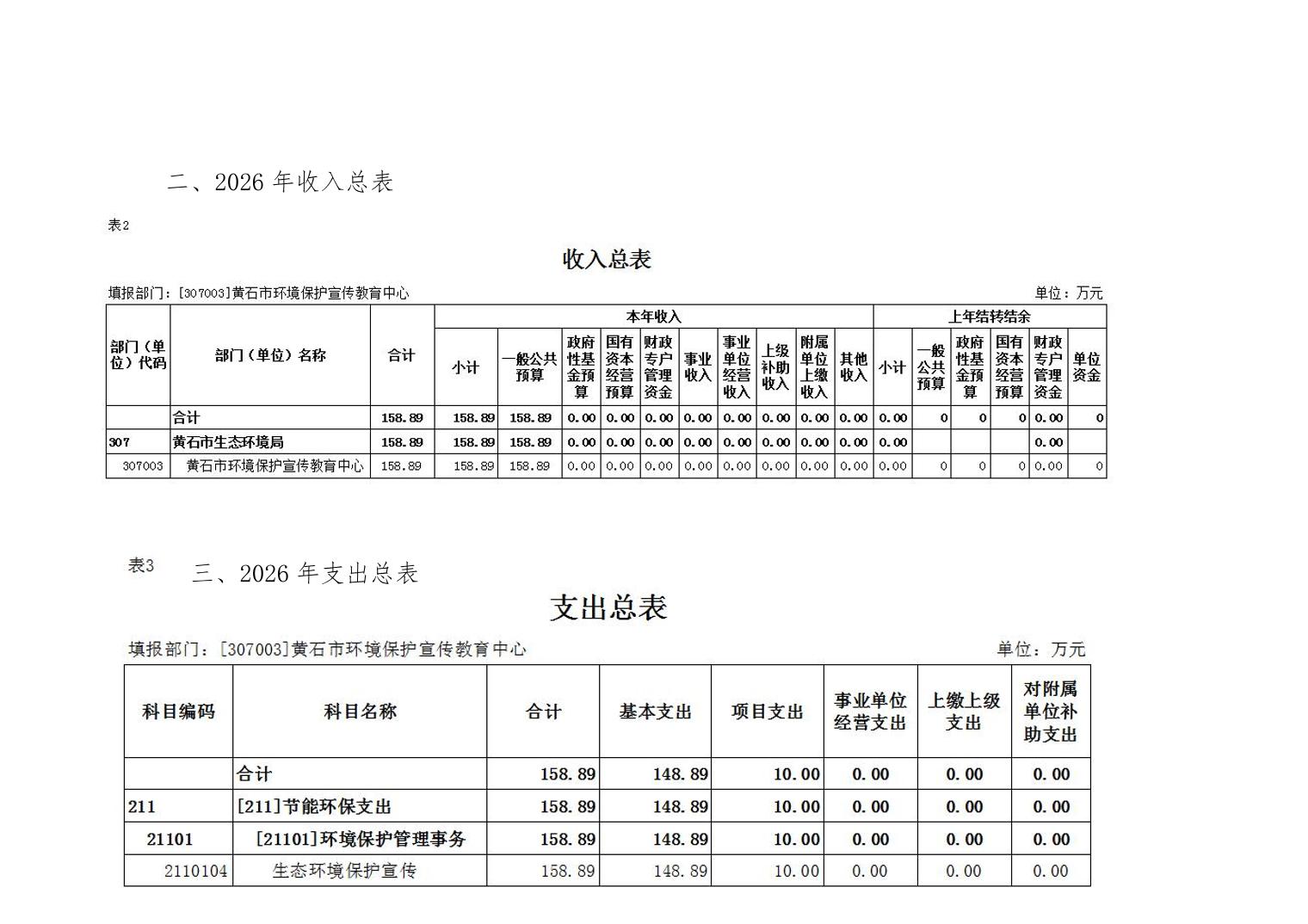 2026年度黄石市环境保护宣传教育中心部门预算公开情况说明