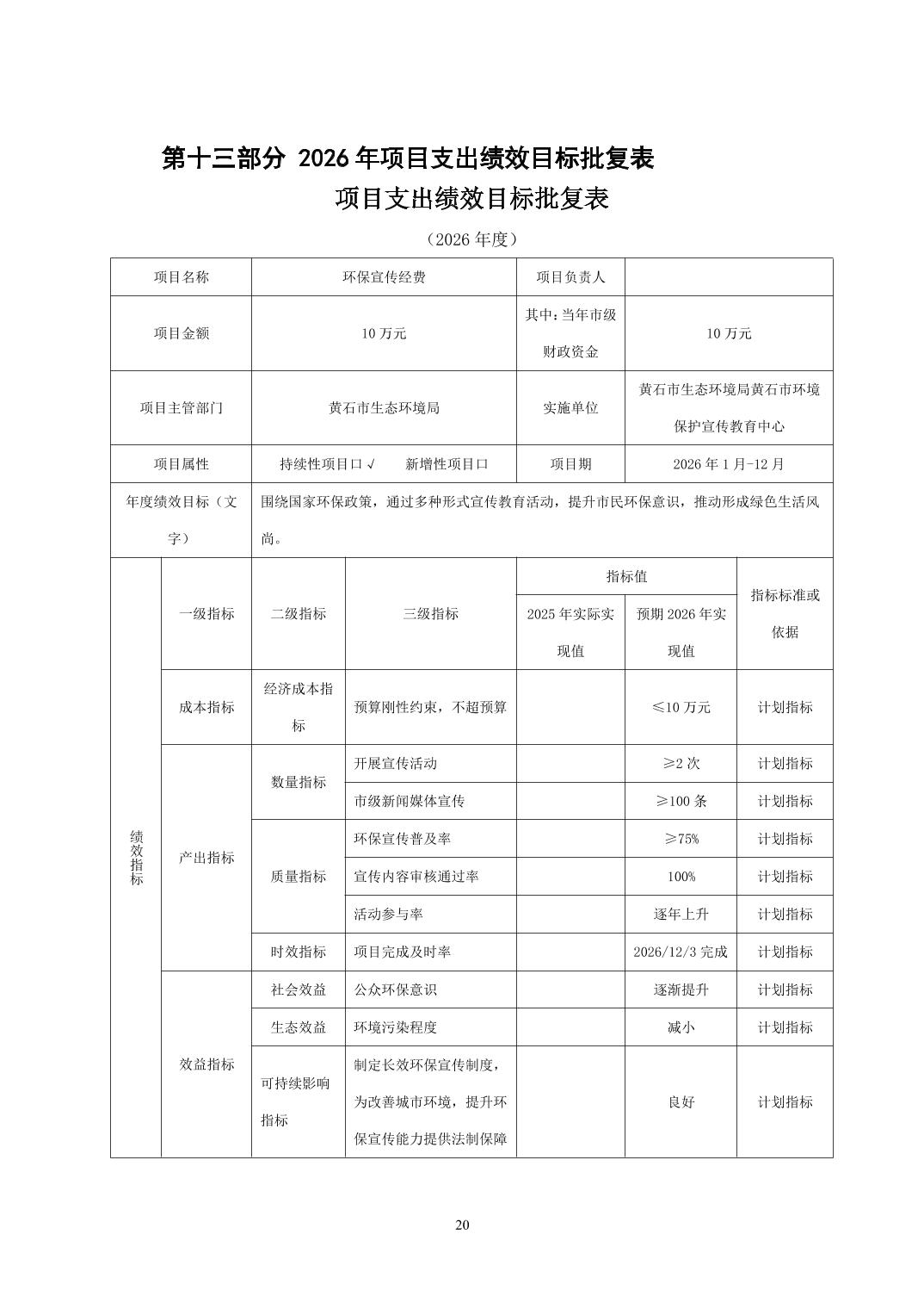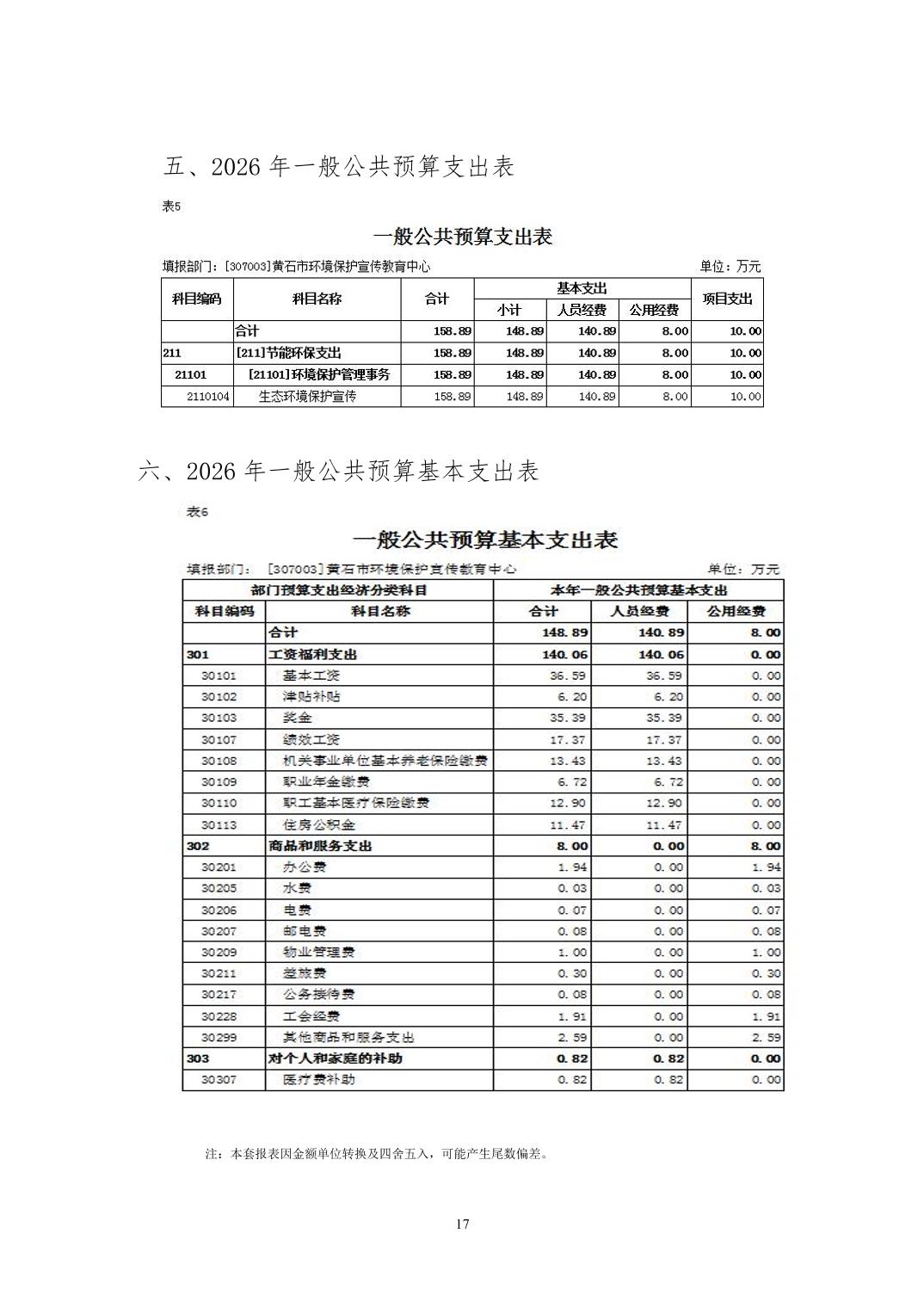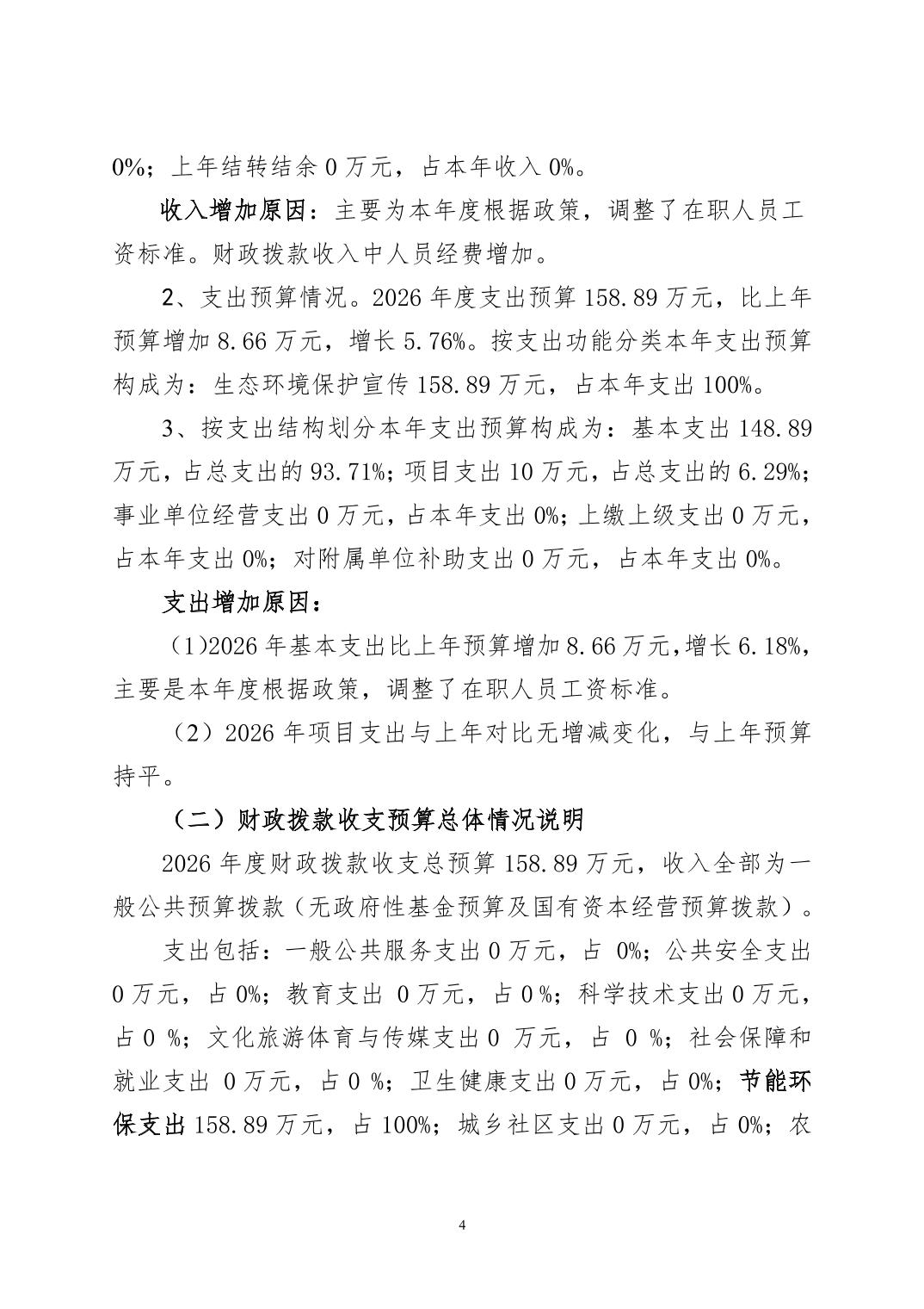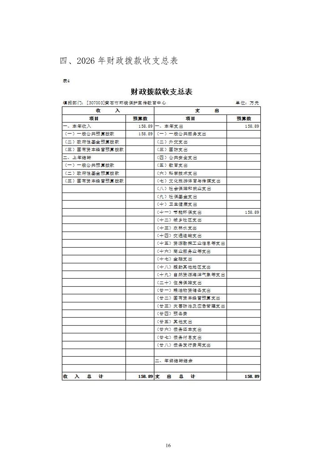 2026年度黄石市环境保护宣传教育中心部门预算公开情况说明