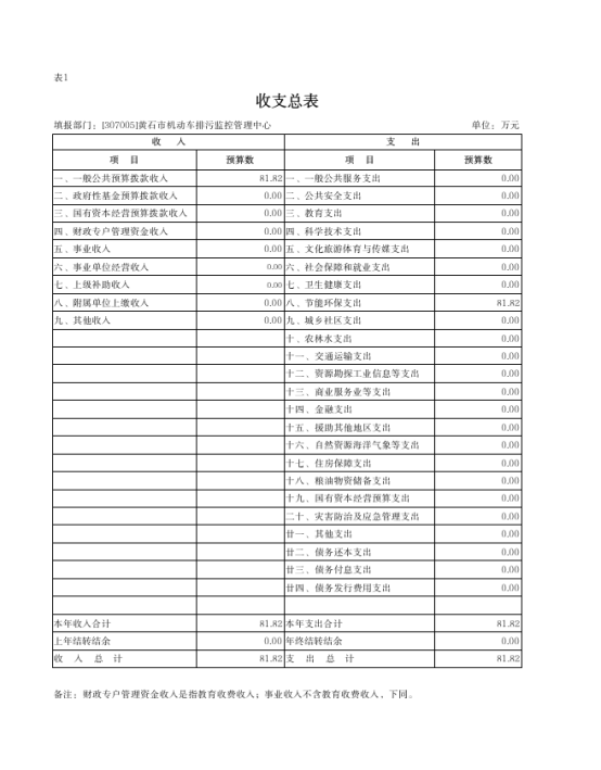 按照综合预算的原则,黄石市机动车排污监控管理中心所有收