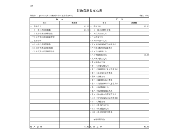 2026年度财政拨款收支总预算81.82万元。收入包括:一般公共预算当年拨款收入81.82万元,占100%;2026年度财政拨款收支总预算81.82万元,收入全部为一般公共预算拨款(无政府性基金预算及国有资本经营预算拨款)。支出包括:一般公共预算支出81.82万元,占100%;节能环保支出81.82万元,占100%。