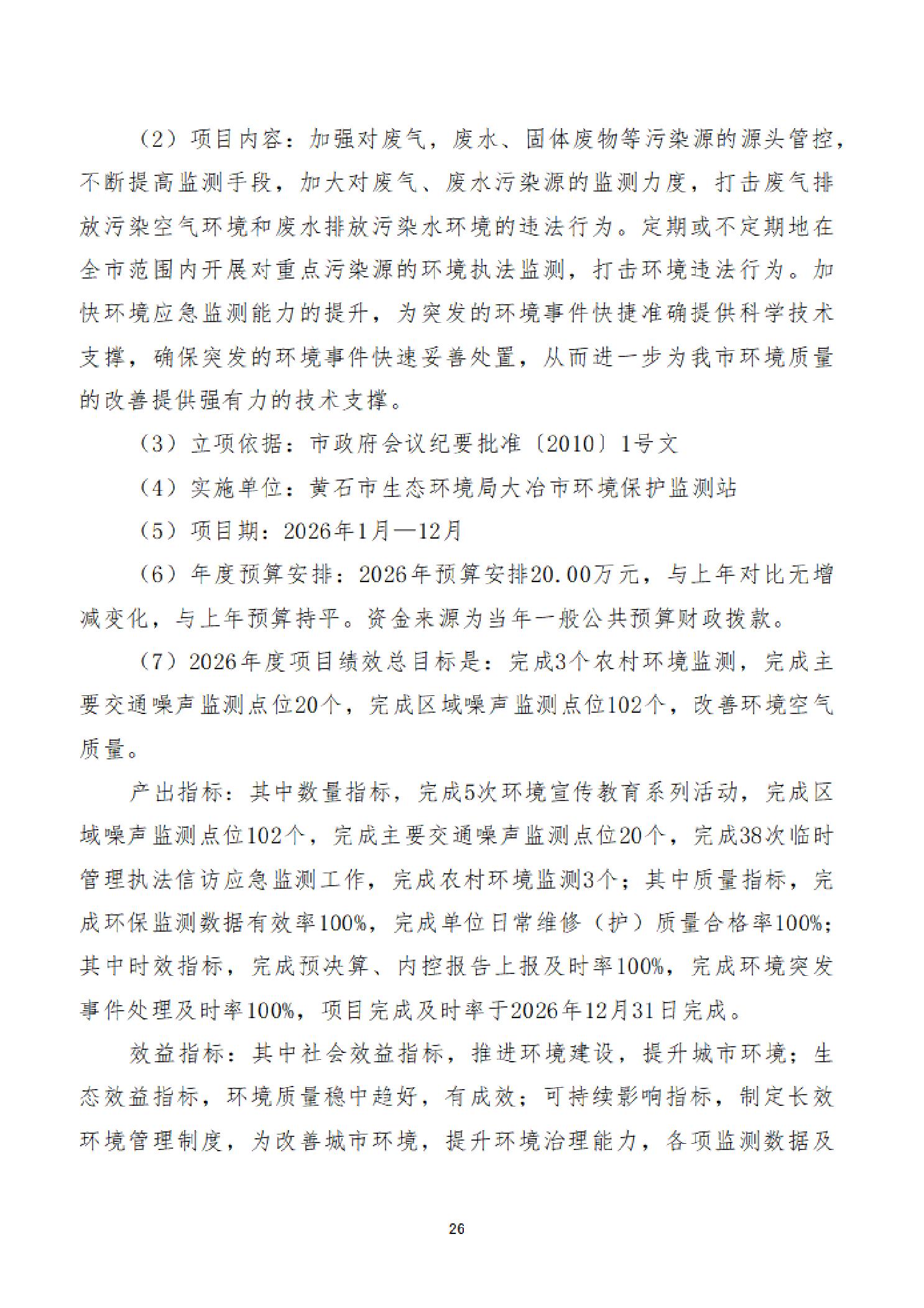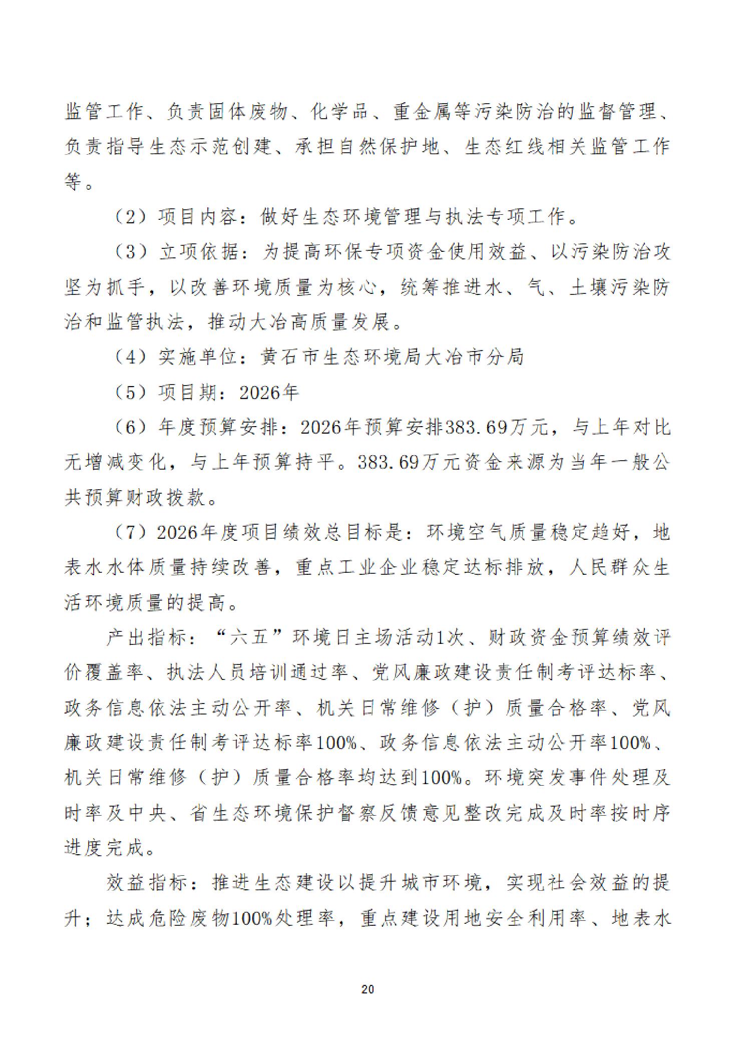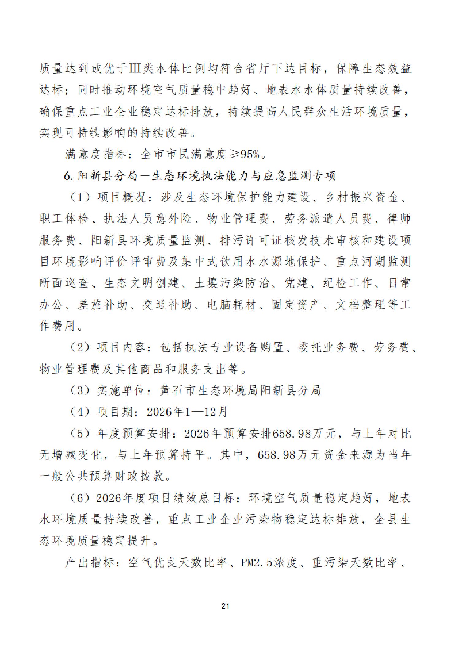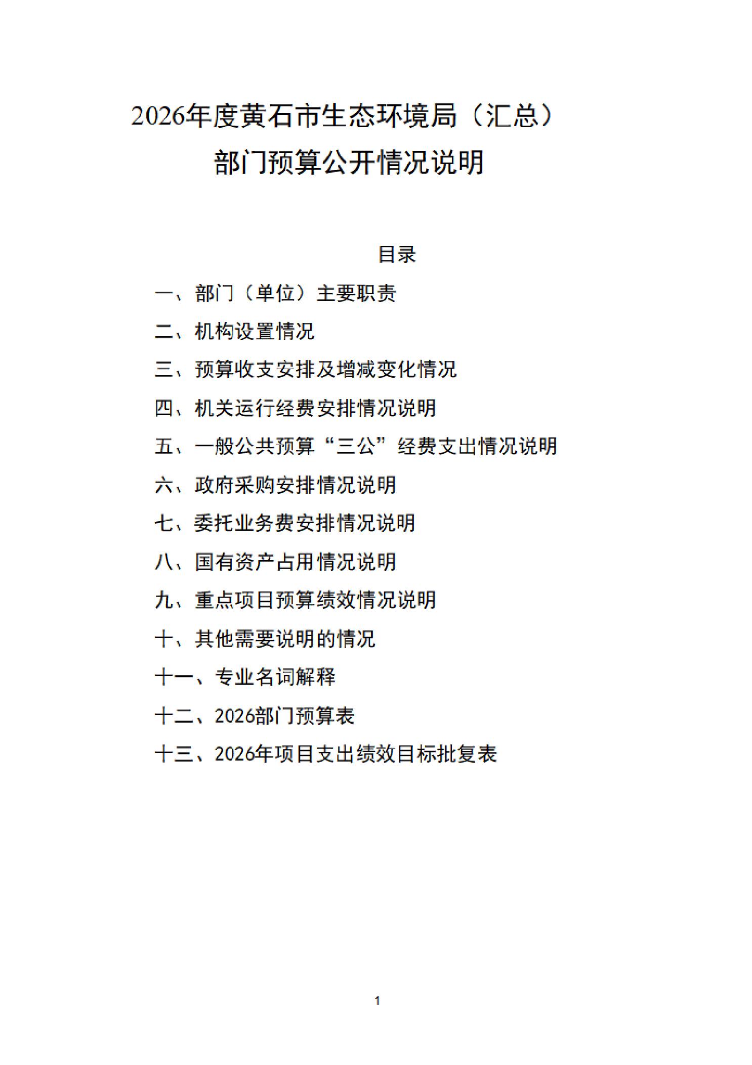 2026年度黄石市生态环境局(汇总)部门预算公开情况说明