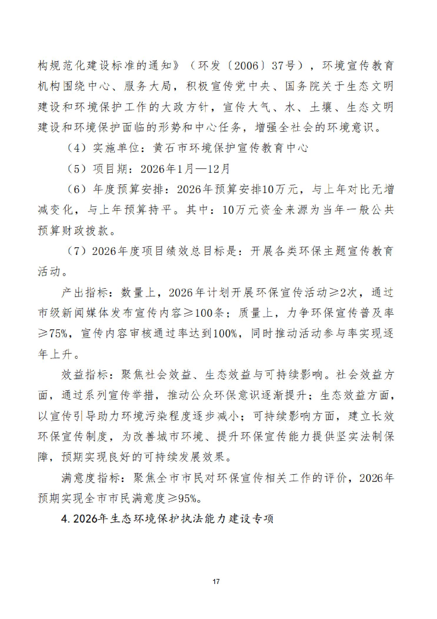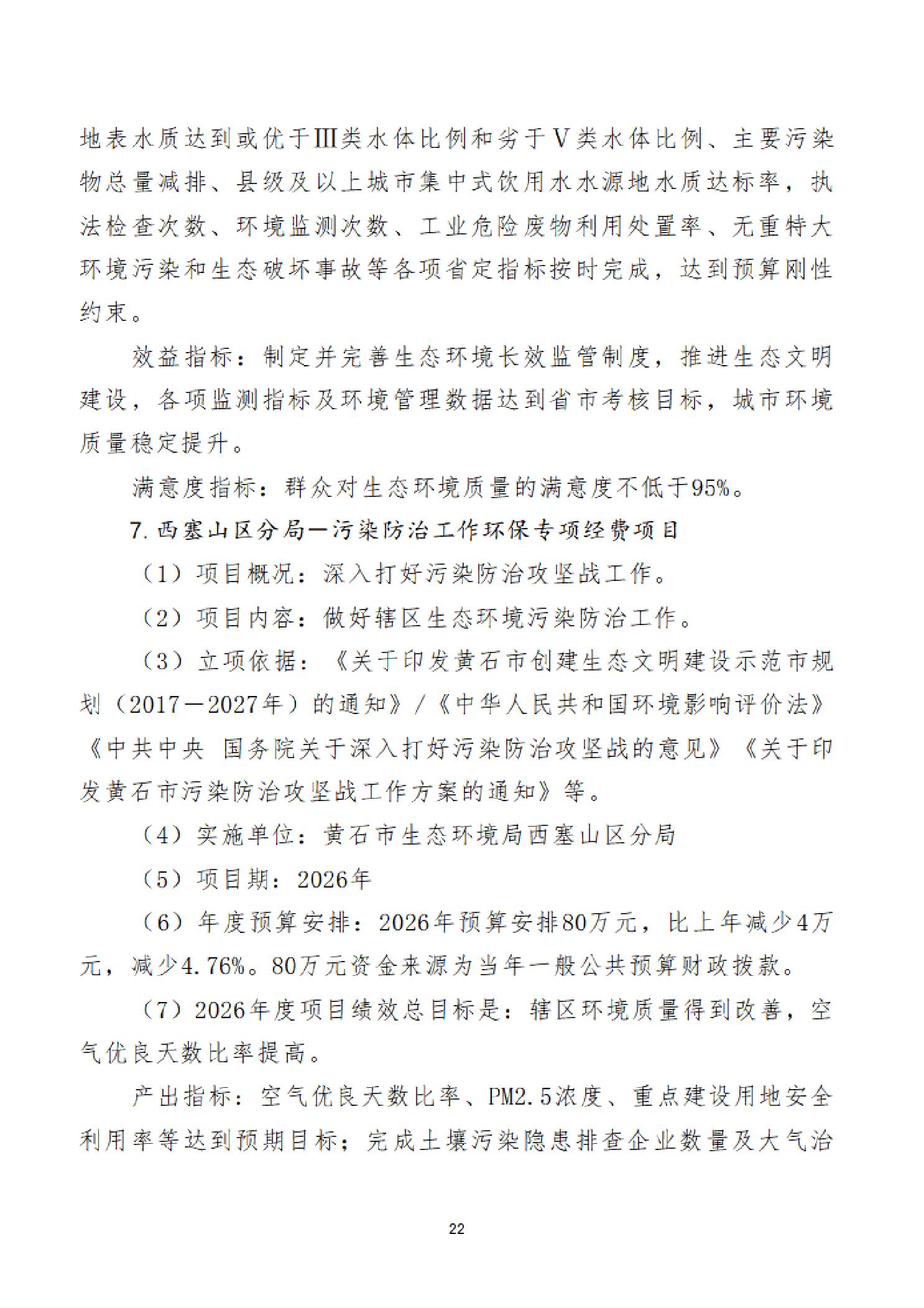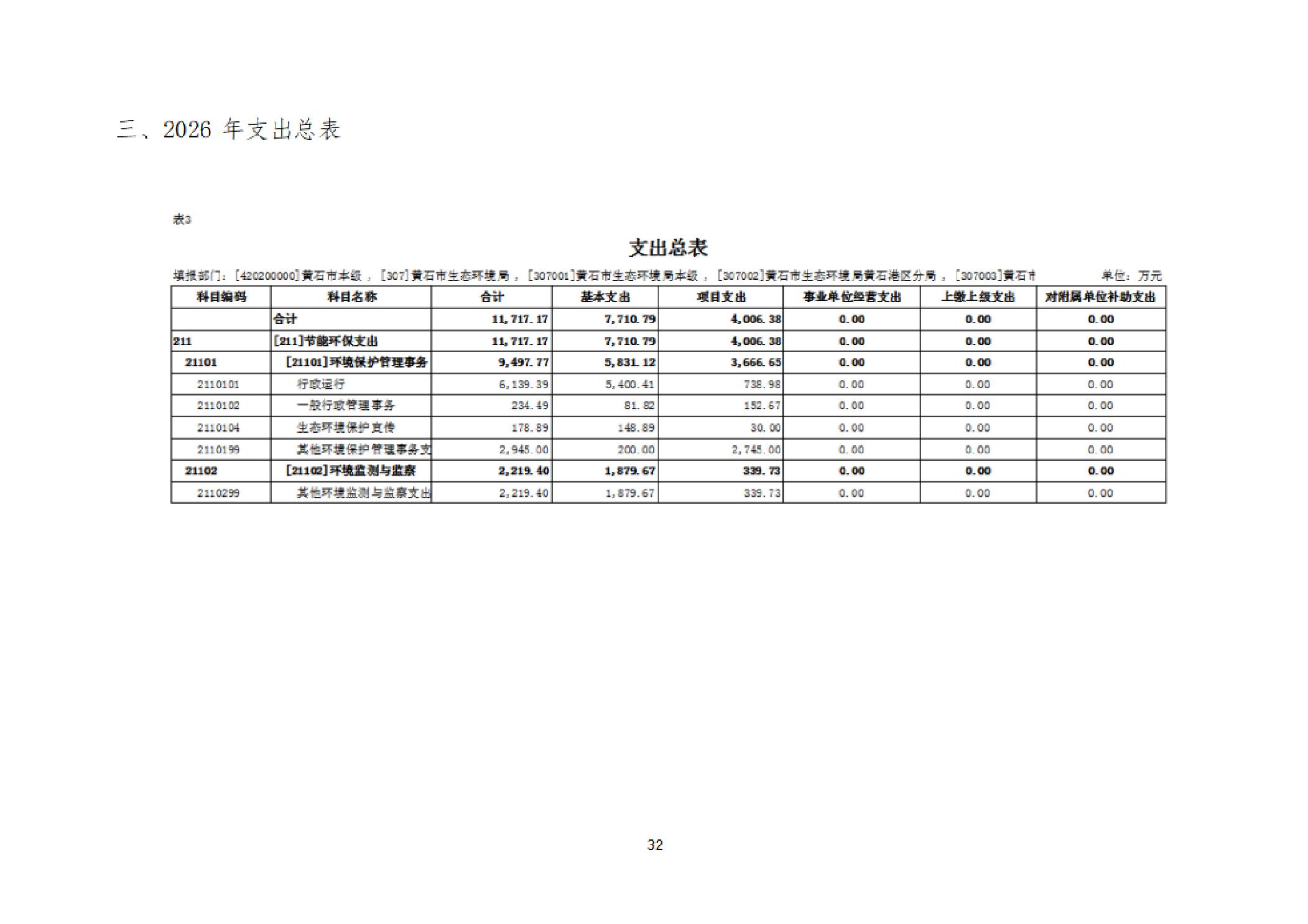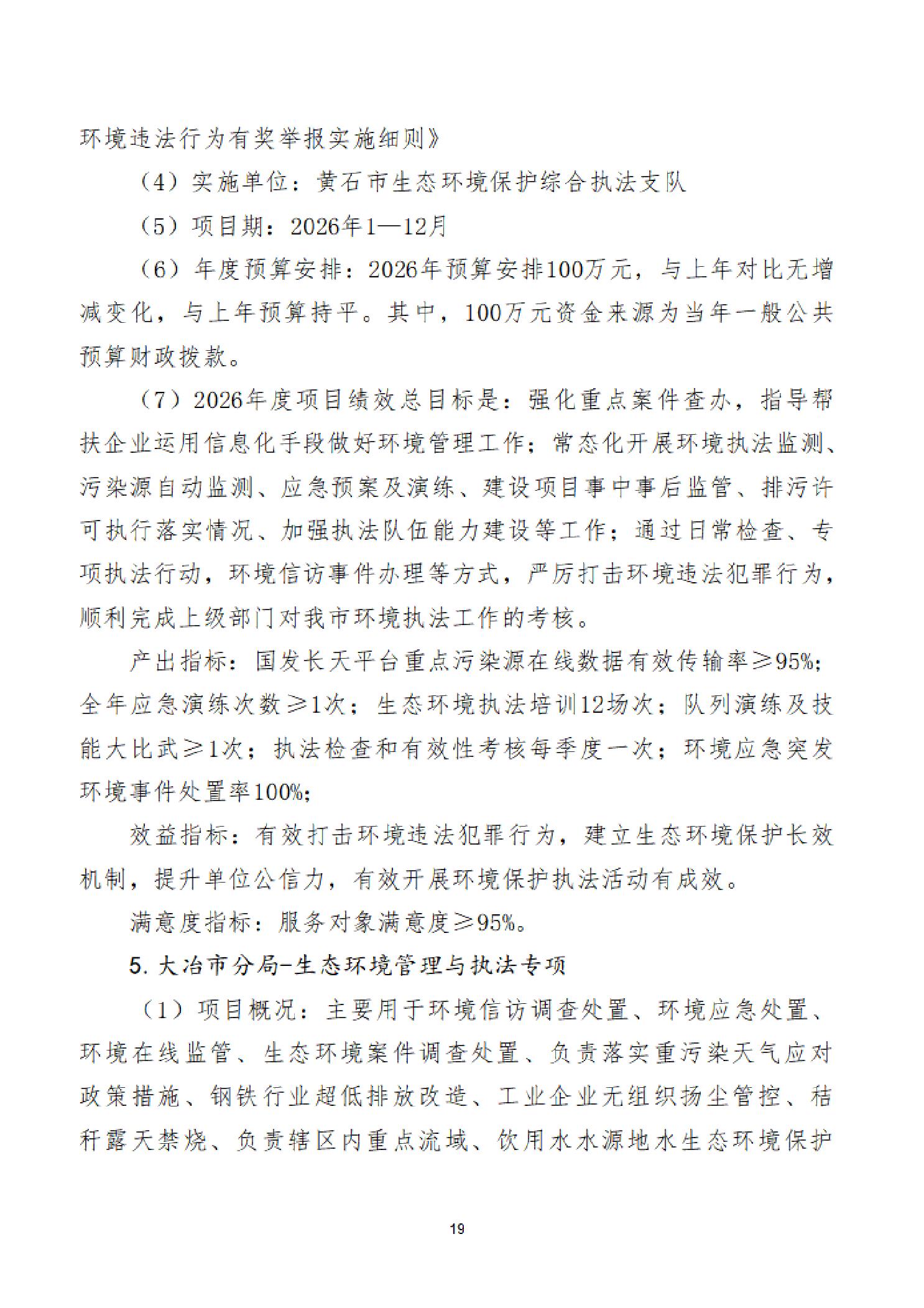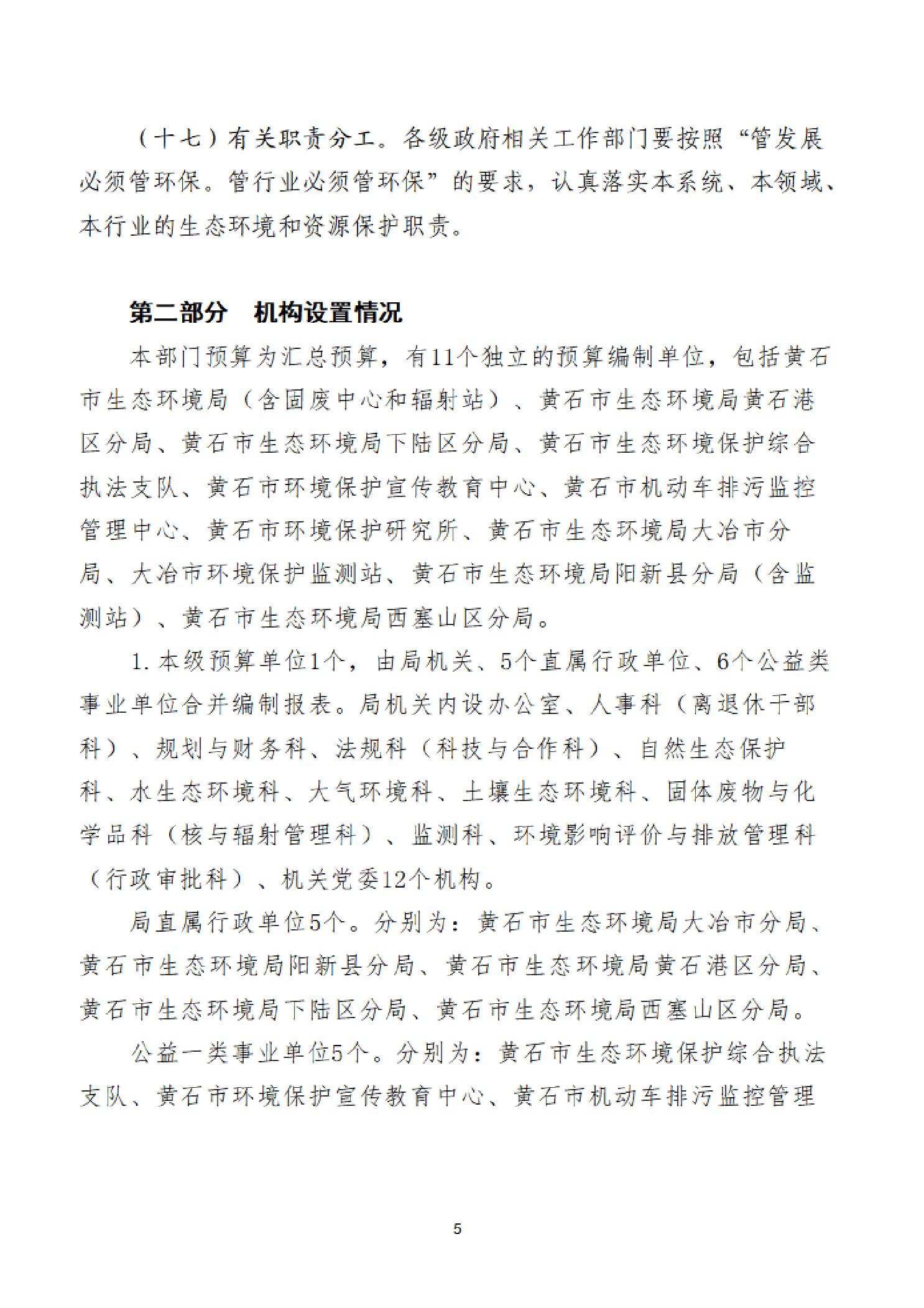 2026年度黄石市生态环境局(汇总)部门预算公开情况说明
