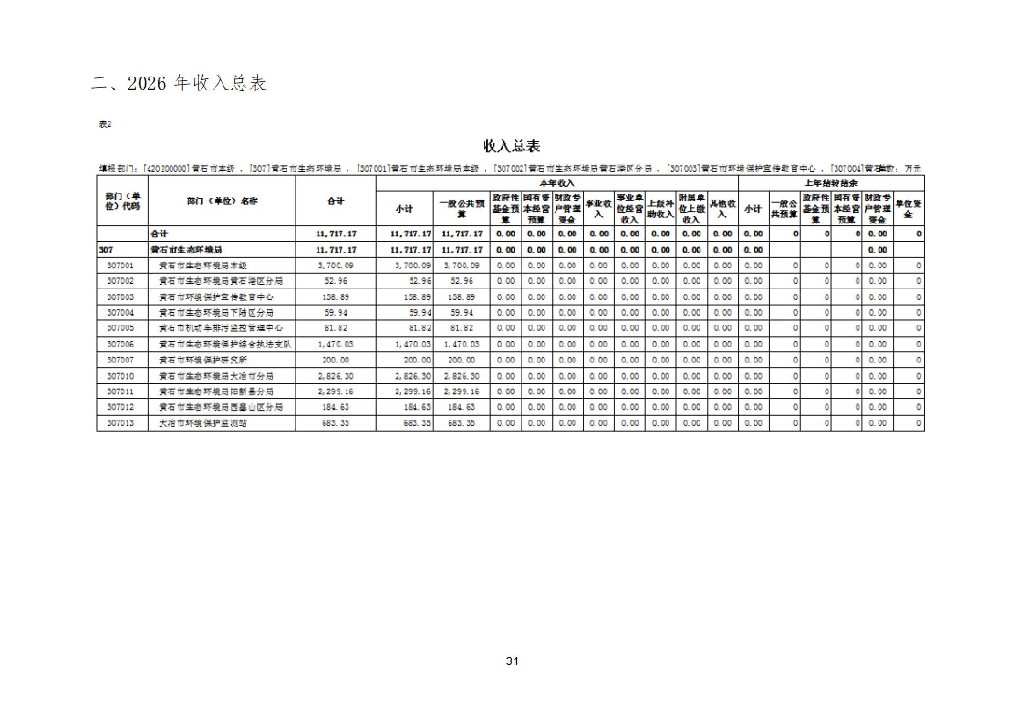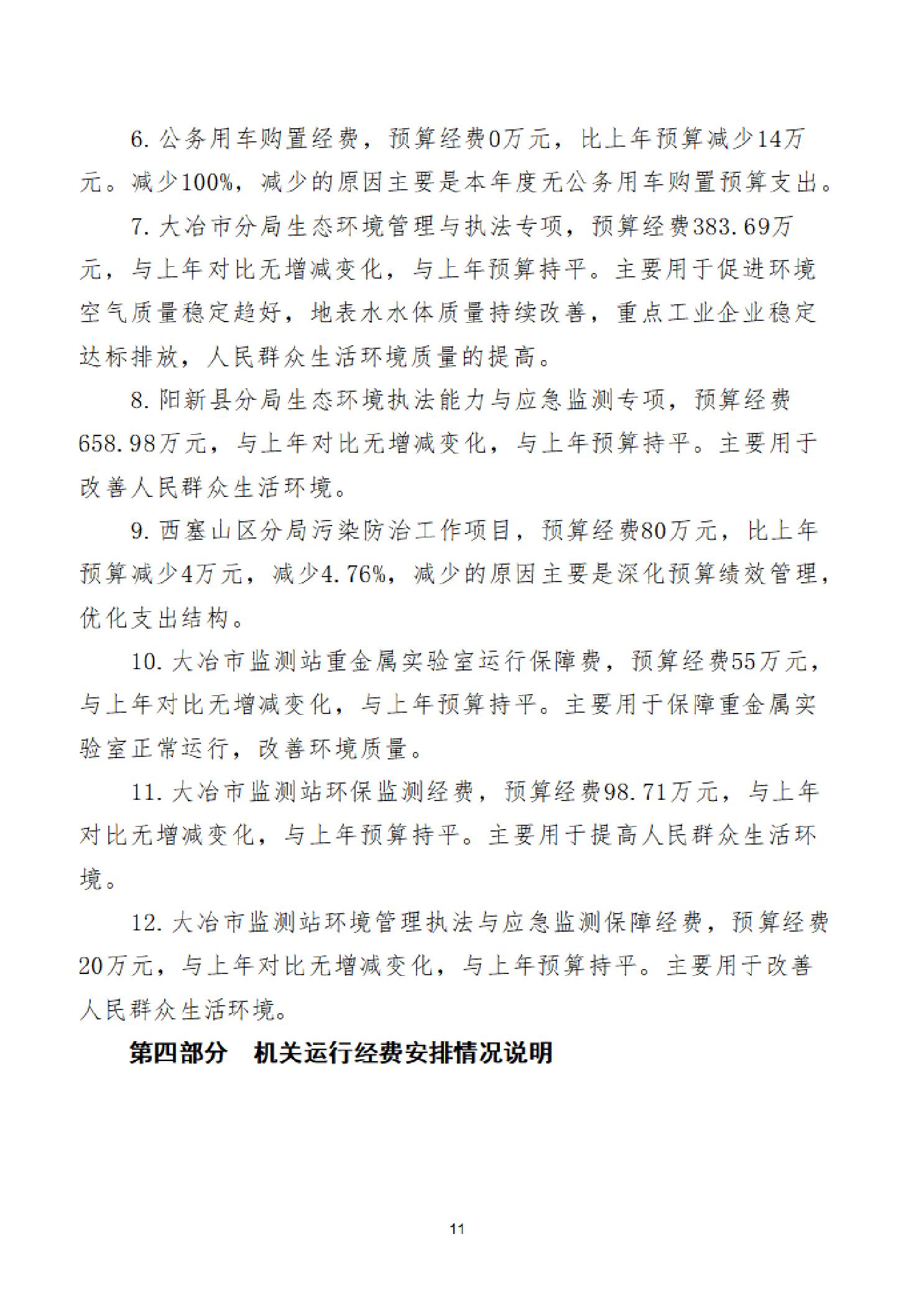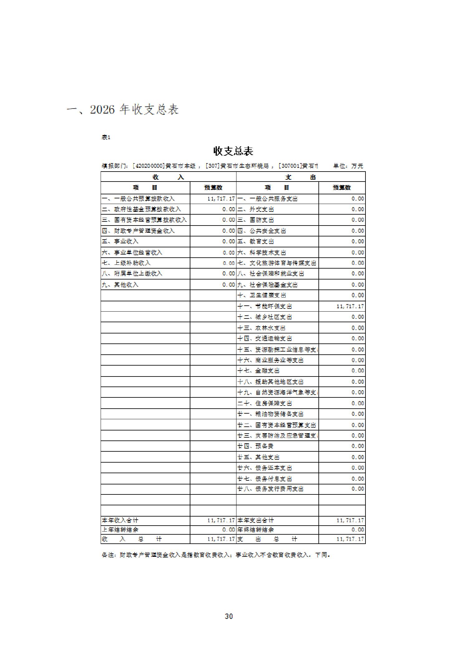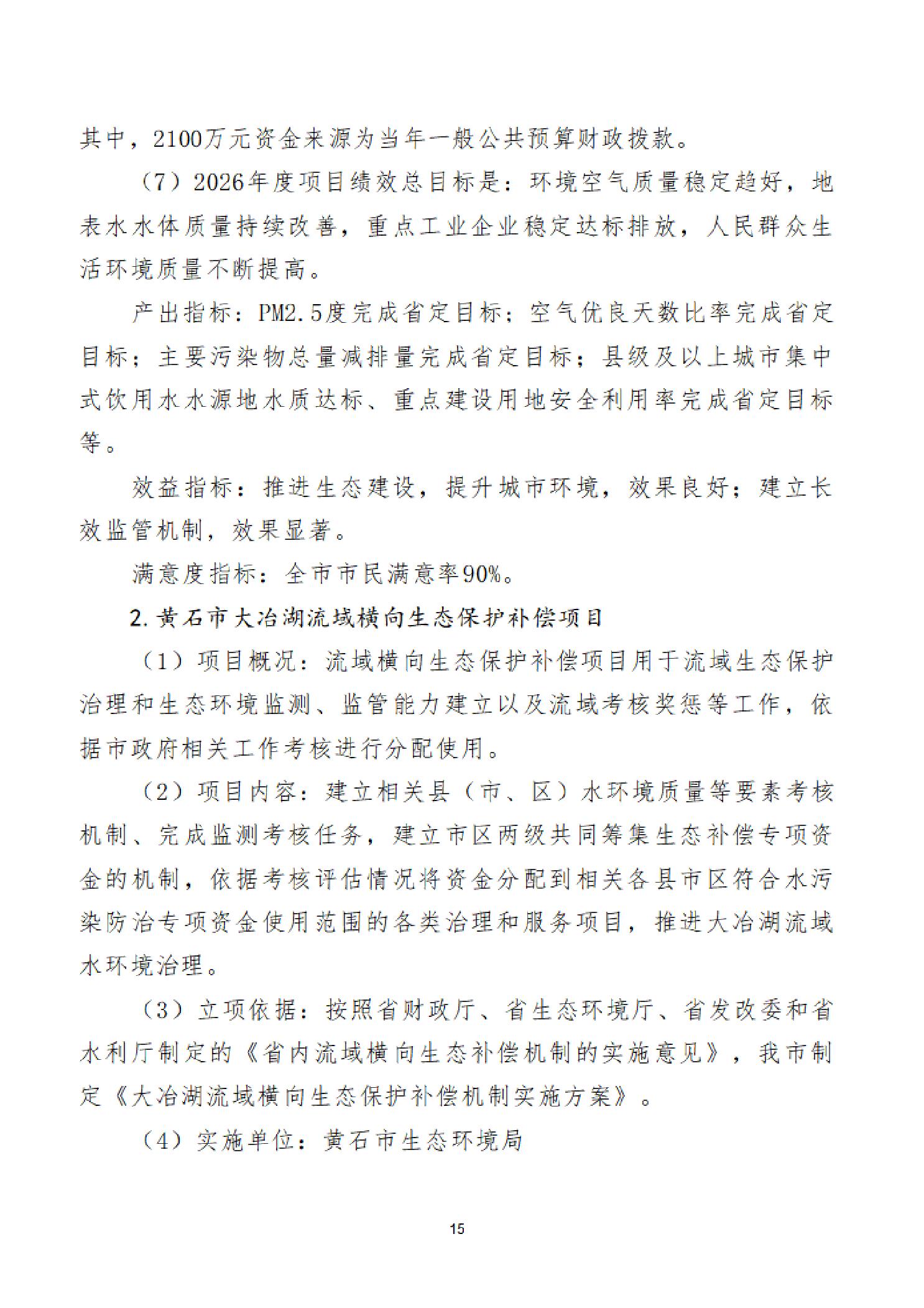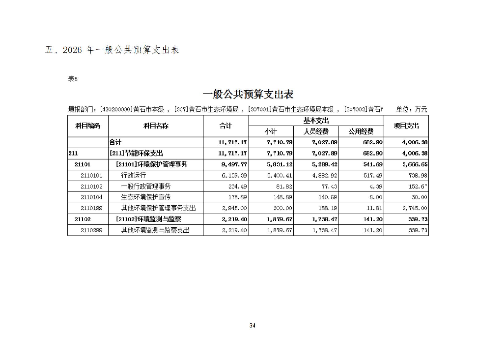2026年度黄石市生态环境局(汇总)部门预算公开情况说明