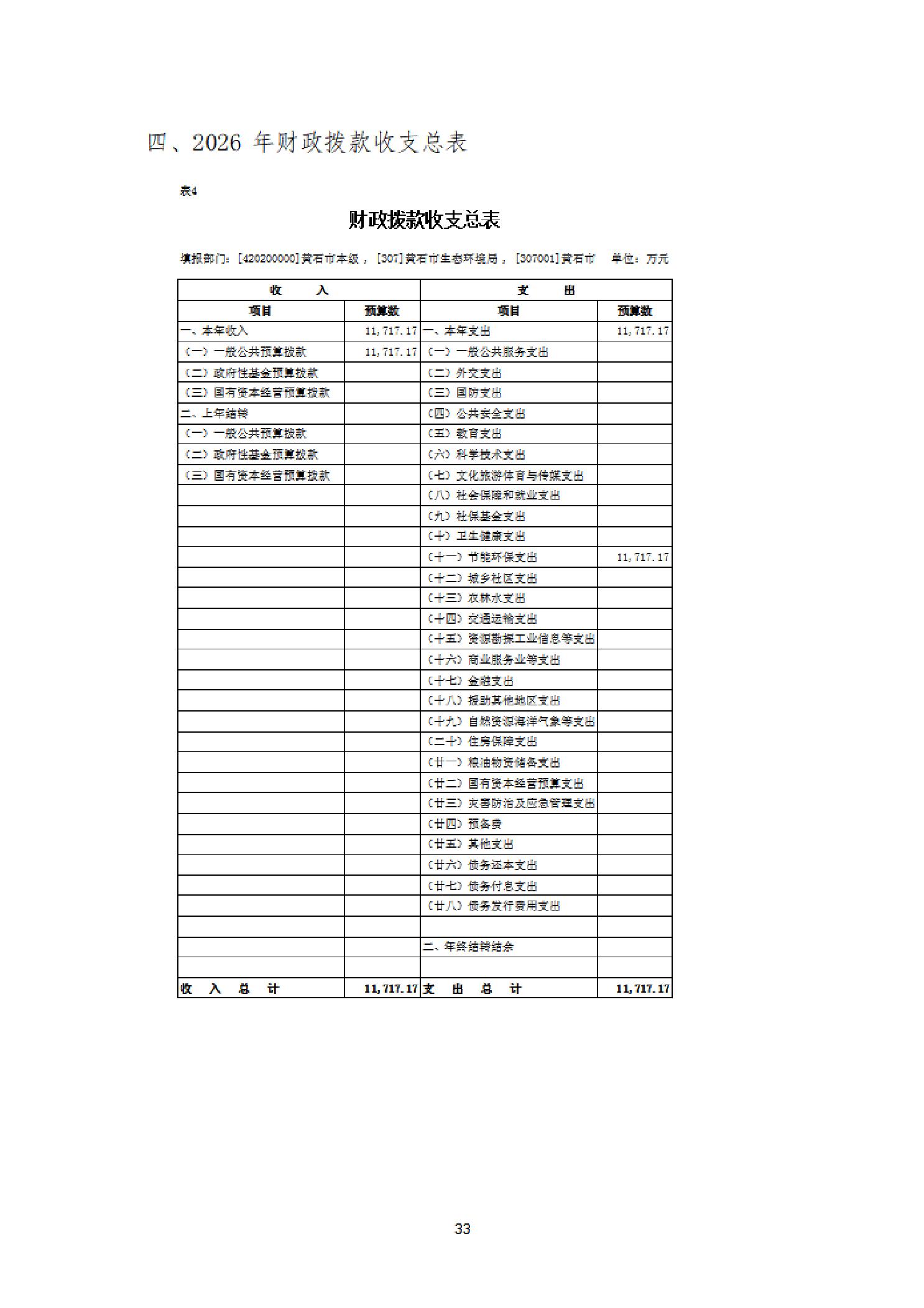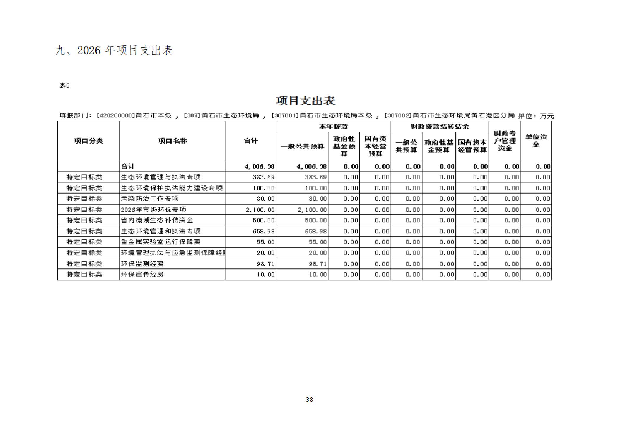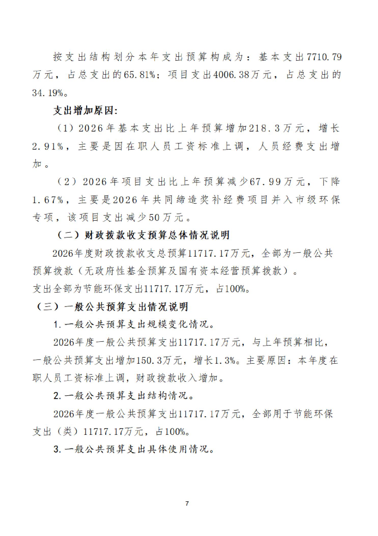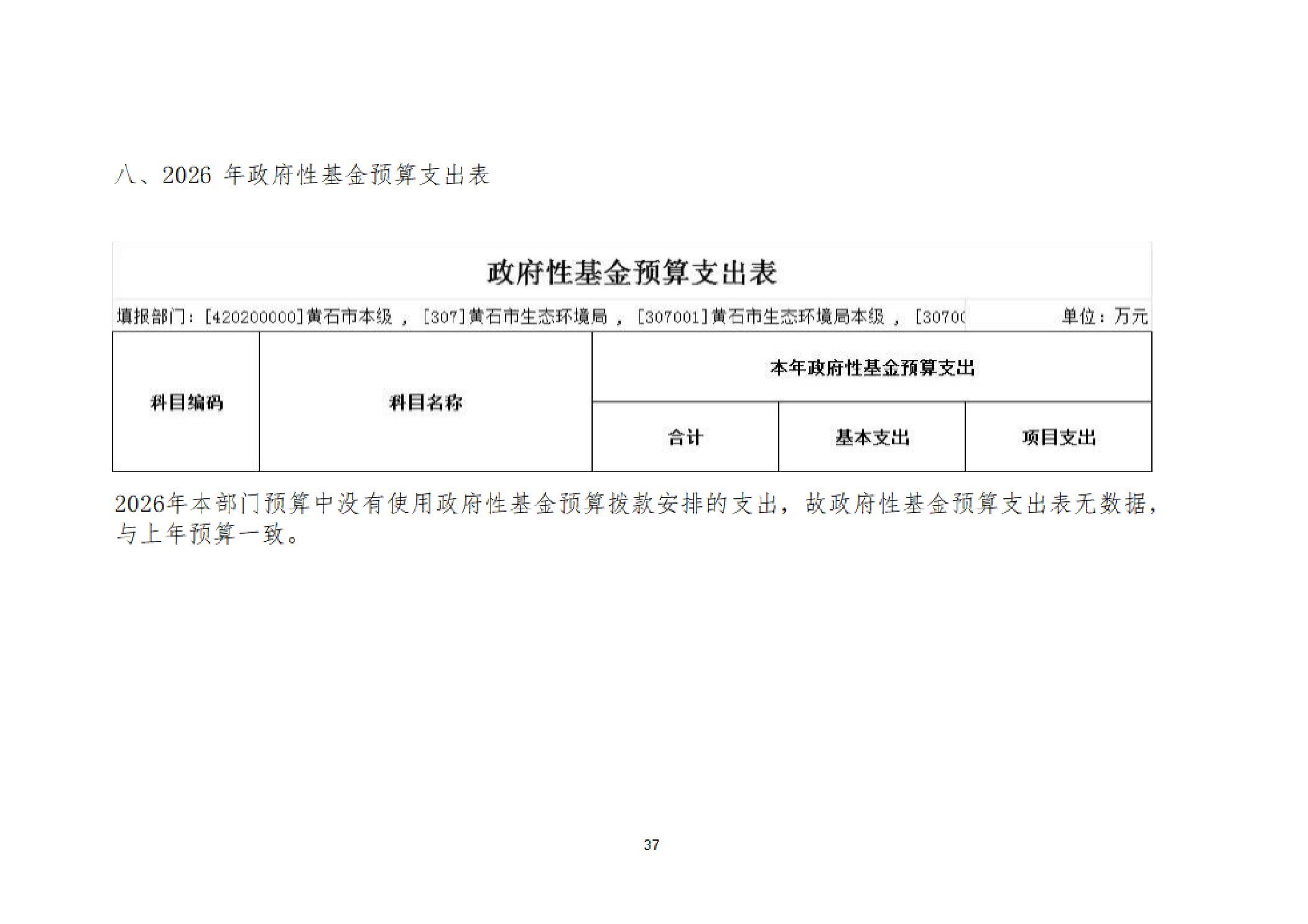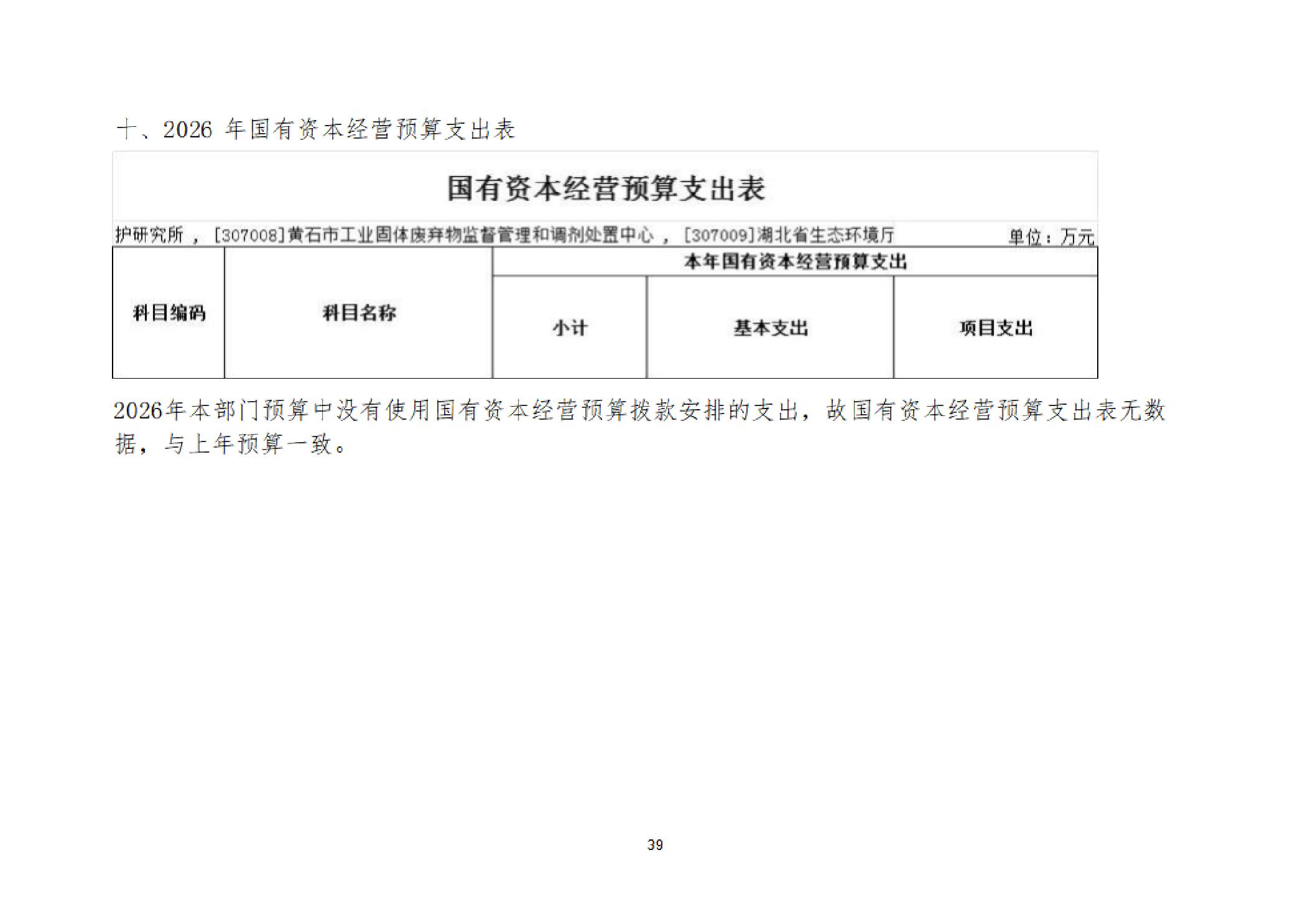 2026年度黄石市生态环境局(汇总)部门预算公开情况说明