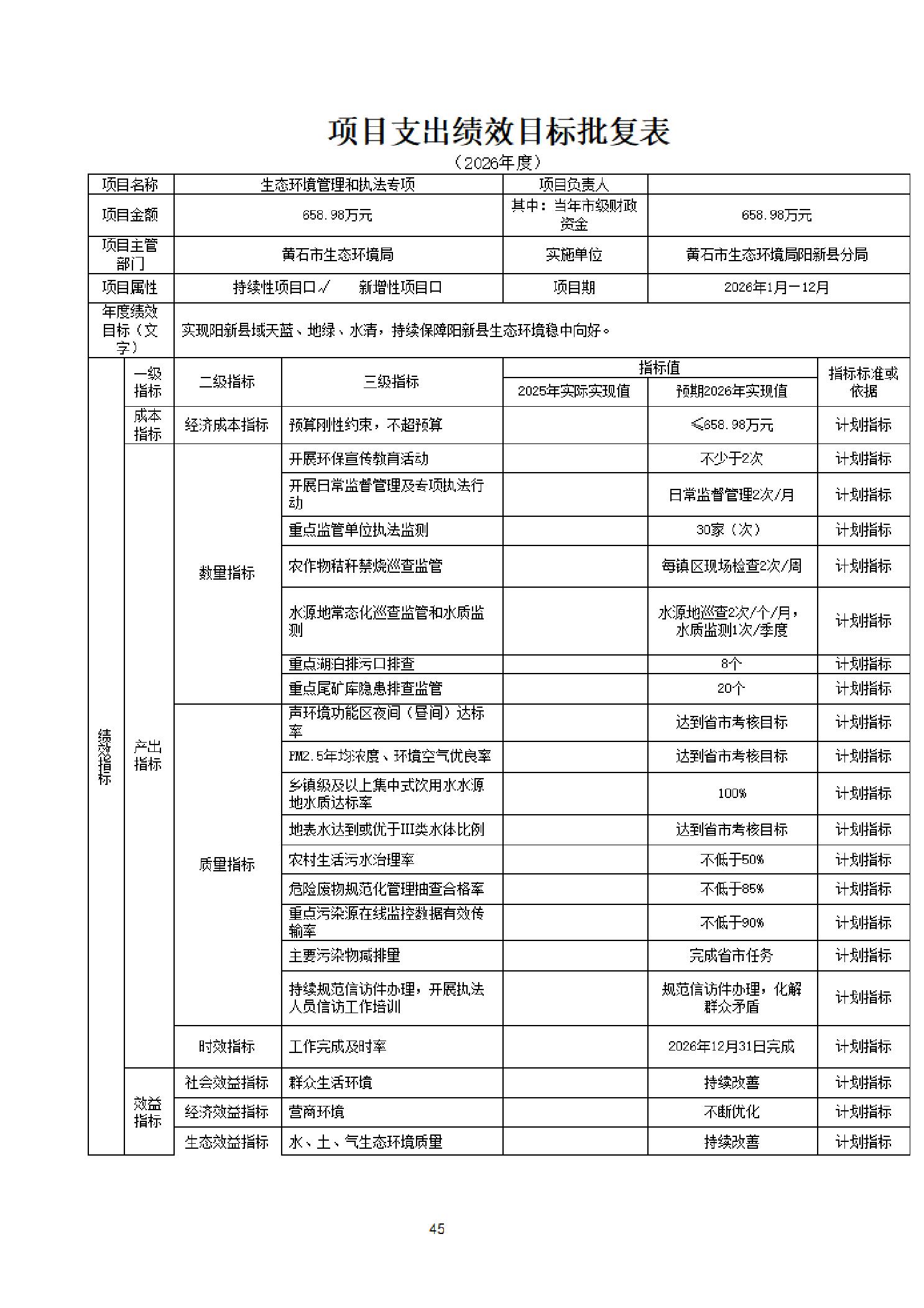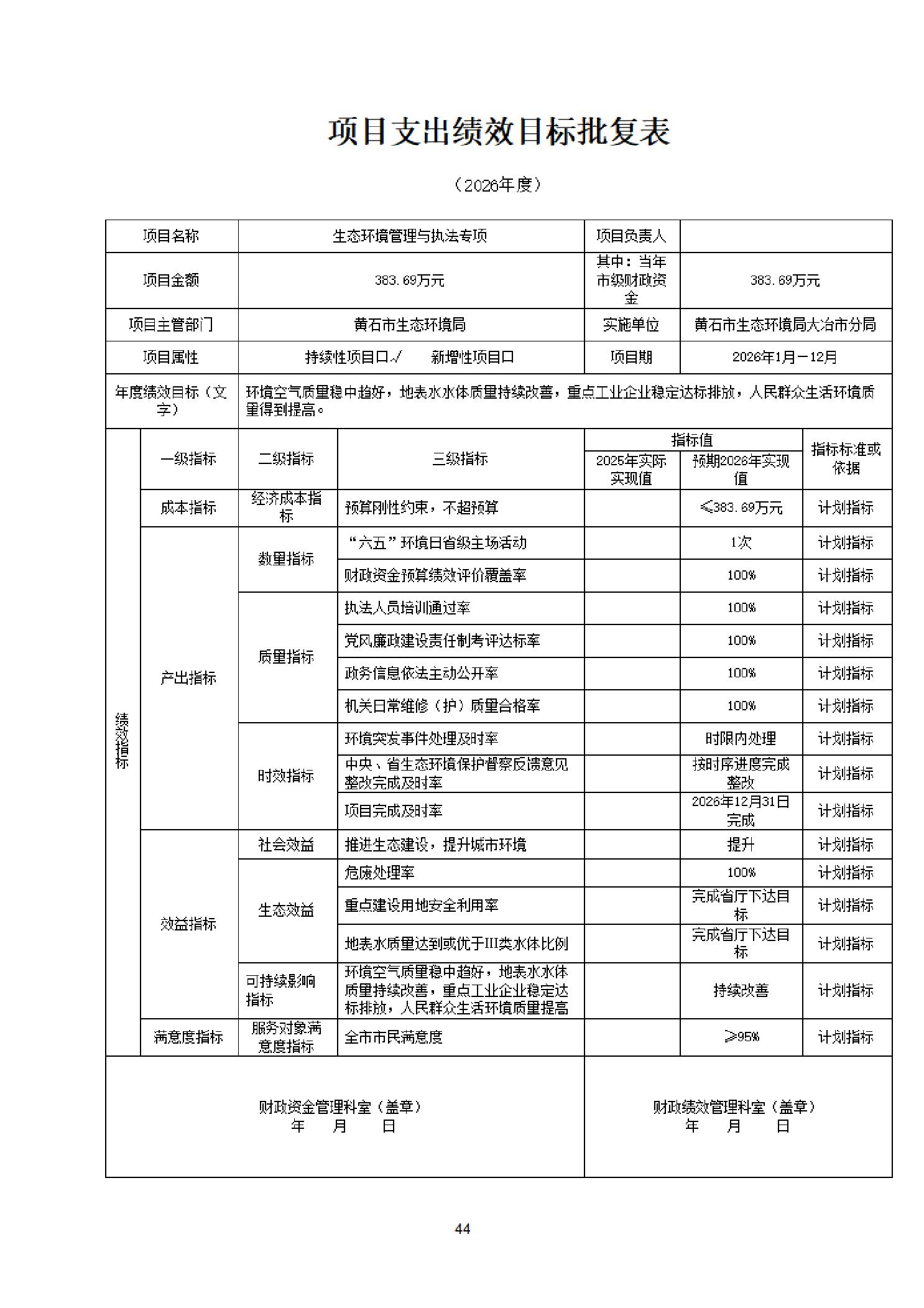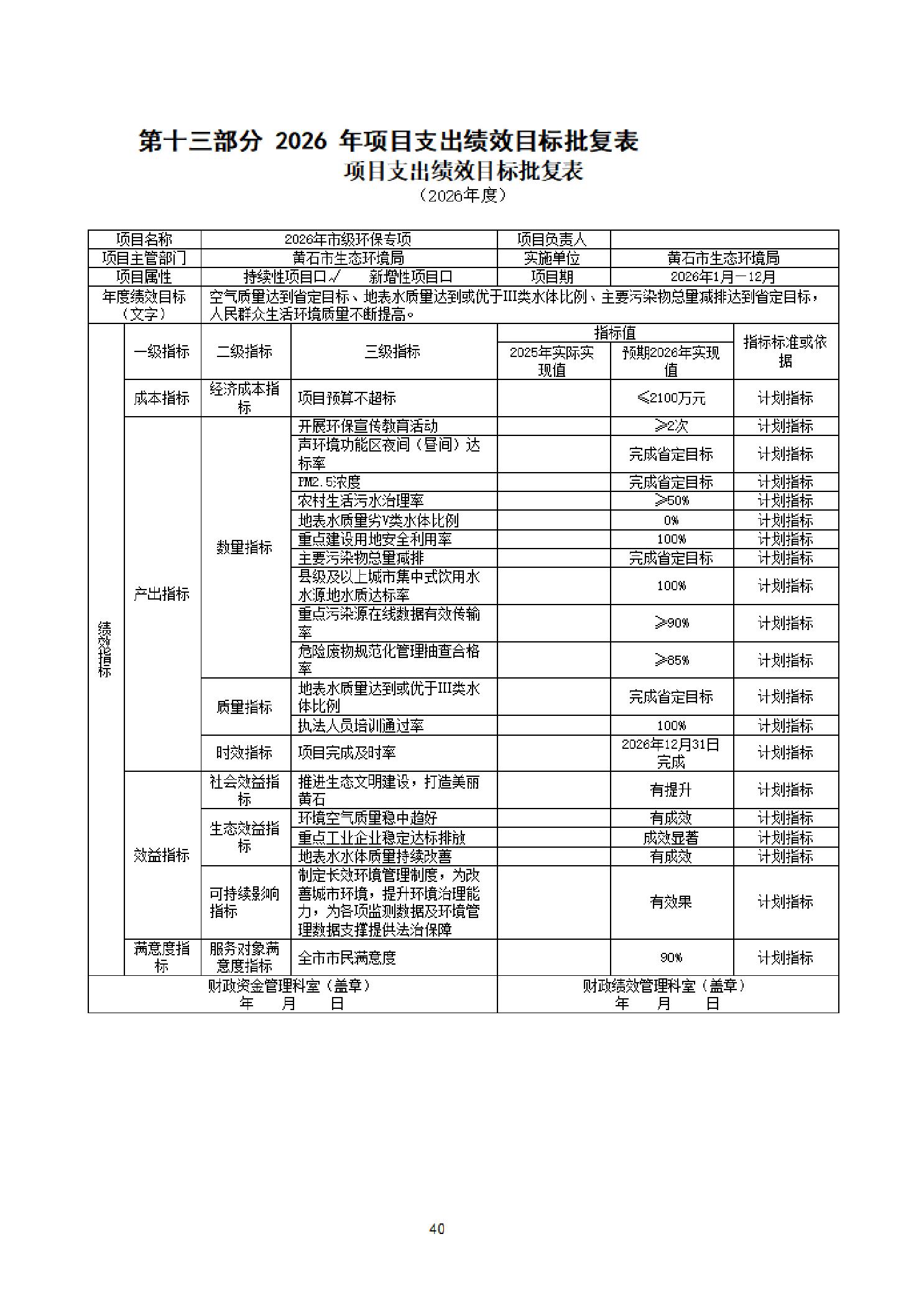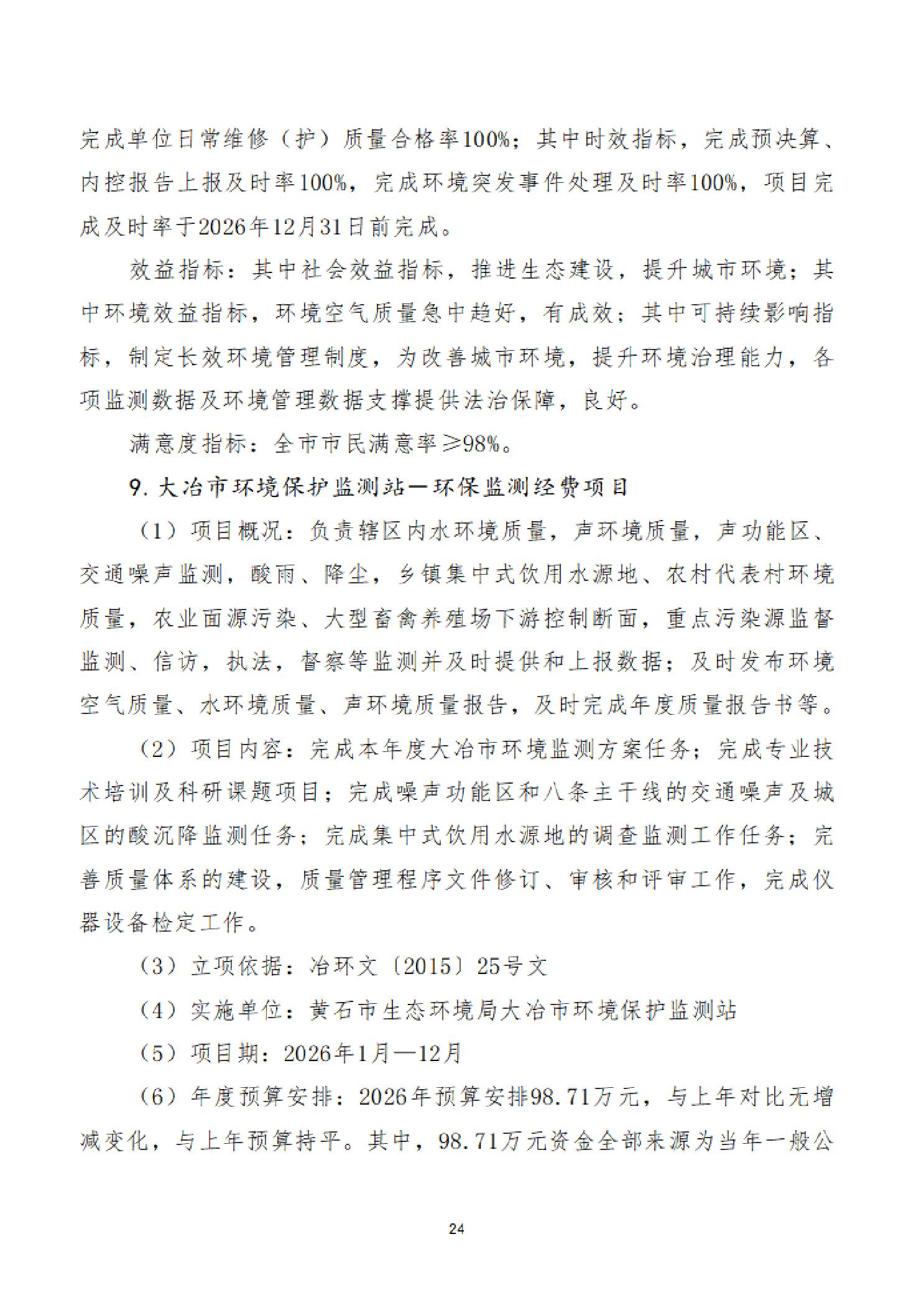 2026年度黄石市生态环境局(汇总)部门预算公开情况说明