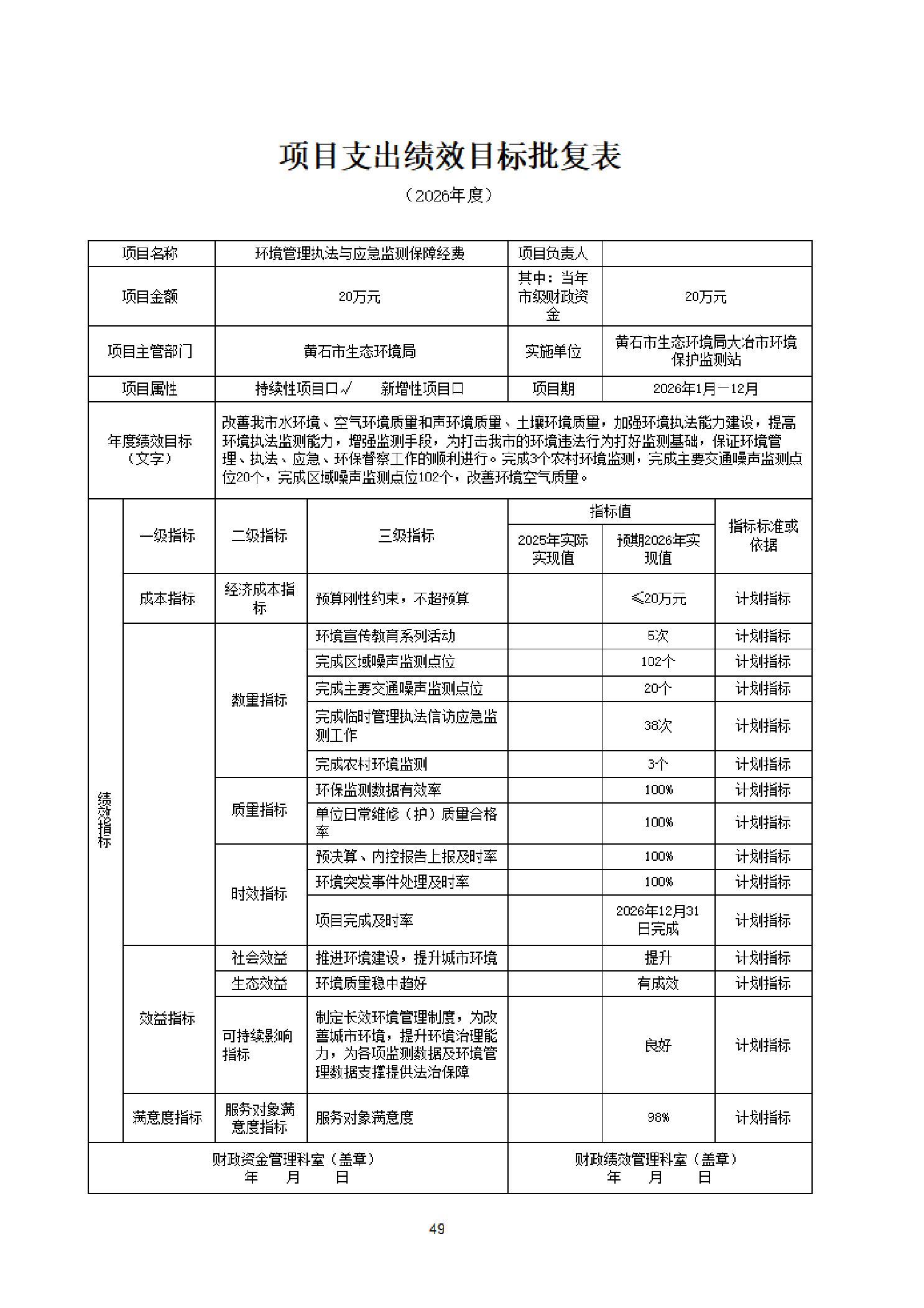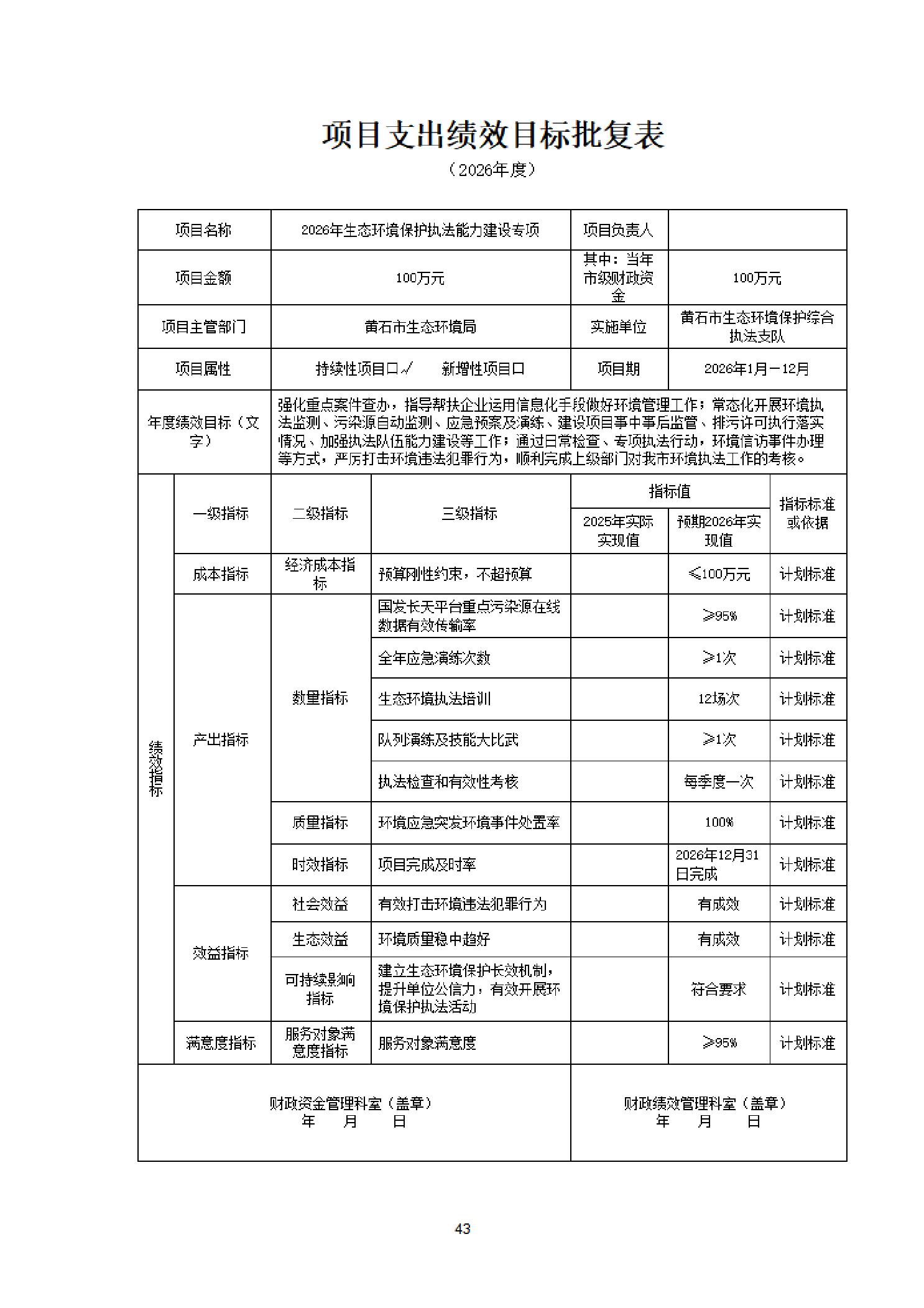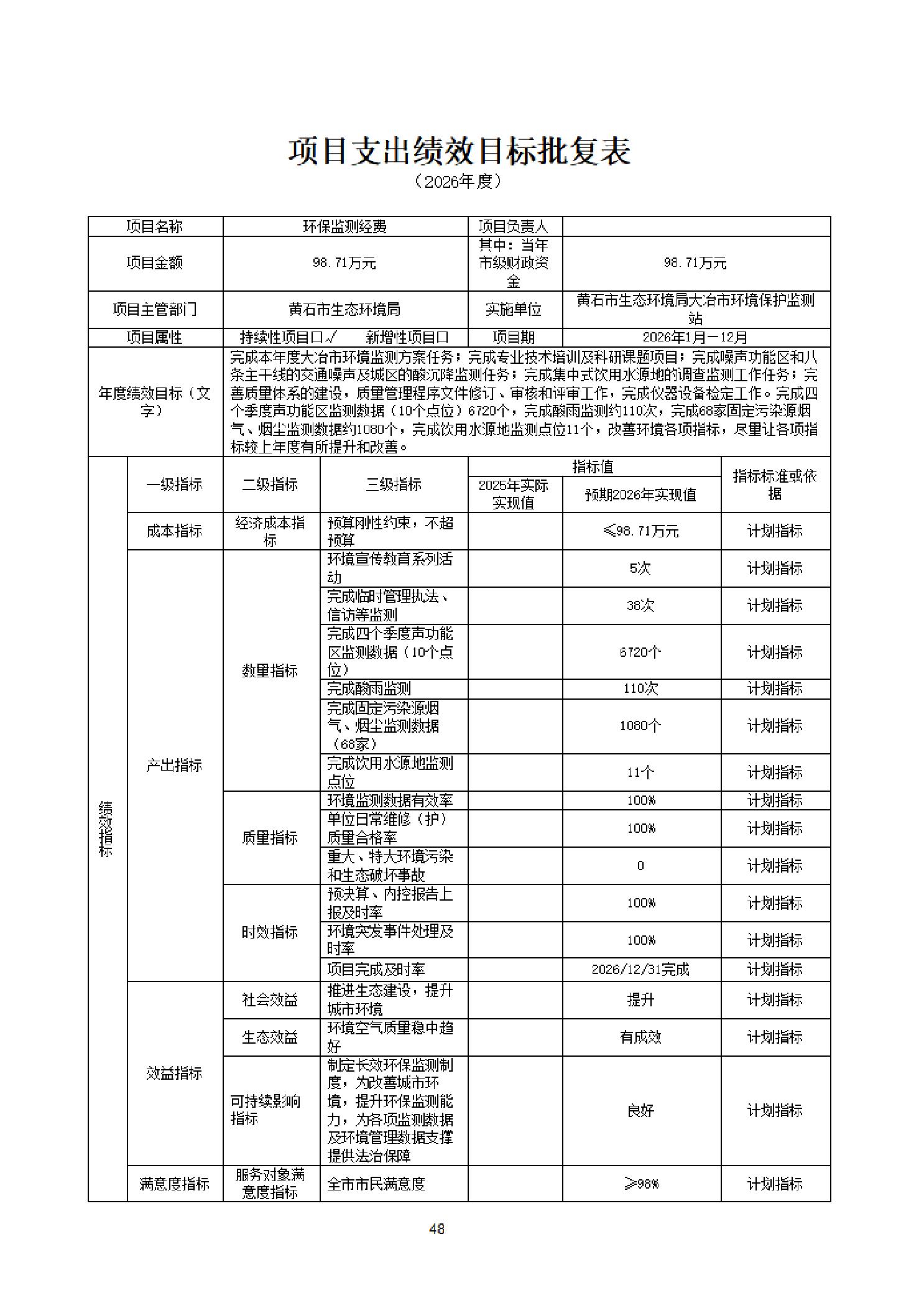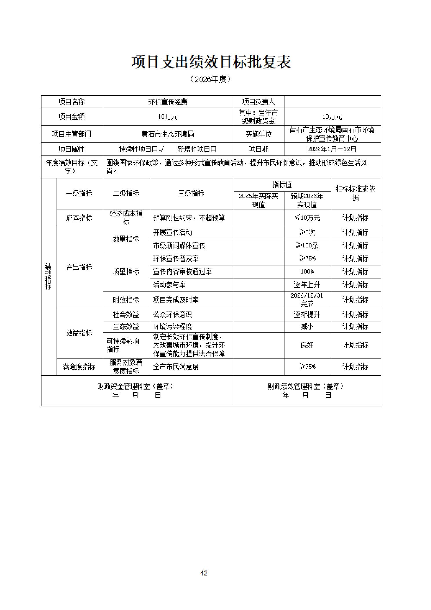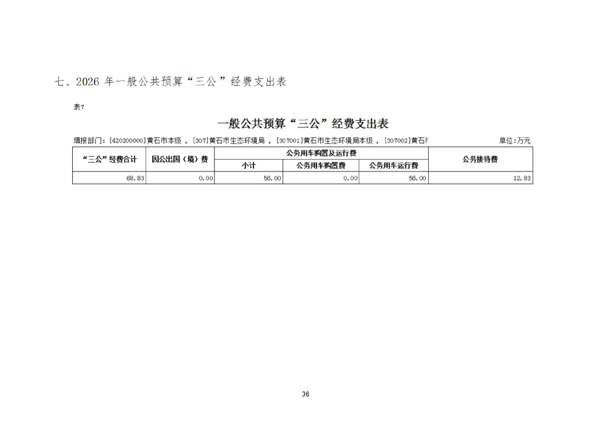 2026年度黄石市生态环境局(汇总)部门预算公开情况说明