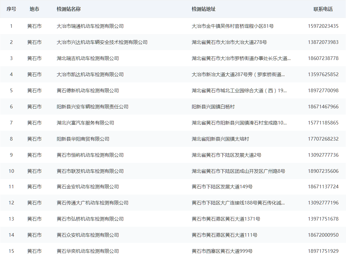黄石市机动车环保检验机构查询(截至2025年7月)