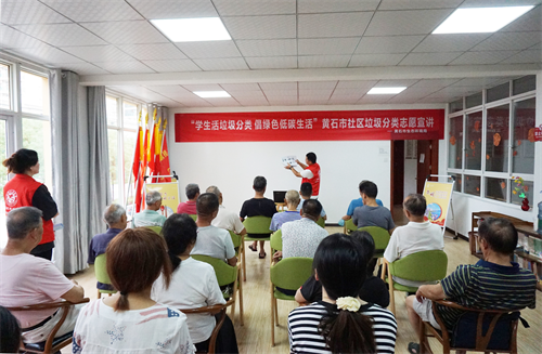 活动中,来自黄石市生态环境局固废中心宣讲志愿者为社区居民上了一堂生动的“社区生活垃圾分类”课。他向大家宣传讲解生活垃圾分类的意义、标准、方法、好处及垃圾处置不当的影响与危害,倡导大家垃圾分类从自身做起,积极保护生态环境。