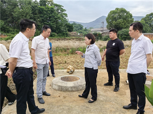张红珍一行先后现场查看了曹家晚村、新屋下村、马叫村等地农村生活污水治理情况。曹家晚村入列全国第一批23个红色美丽村庄试点村,2023年成功申报了省级生态村。为切实加强农村环境综合整治,该村积极开展黑水、灰水治理,截至2020年共完成户厕改造190户,共计365 户达到无害化标准,农户无害化厕所普及率达到 100%;村民厨房炊事、洗衣和洗浴等排水通过房前屋后有效收集、土地消纳和小菜园、小果园利用等方式进行处理。同时,该村以共同缔造为契机,花费50万元钻了一口180米深的水井,变死水为活水,有效改善了门口池塘的水质。新屋下村通过纳管和改厕资源化利用等方式,大幅提高农村生活污水治理率,自农村开展“厕所革命”以来,该村先后对130家农户进行了不同形式的“厕改”,使乡村“厕污”问题得到极大改善,新屋下湾、何家湾已完成二三级管网铺设,新屋下村人居环境得到显著提升。马叫村戴家湾实施整湾推进厕所粪污与生活污水一体化治理和资源化利用试点项目,改变了该湾一到雨天污水横流的现象,提升了村容村貌。“虽然生活在农村,但我觉得很幸福,出门就是水泥路,农闲的时候可以去广场溜溜,生活质量不比城里差。”村民曹先生开心地说。