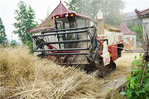 在黄石市大冶保安镇农科村,村里的集中堆场,谷物联合收割机正在飞速运转,农户们将集中收割的油菜籽装袋,同时粉碎机将秸秆粉碎、还田,顺着村民们惬意的笑容,不远处拖拉机正翻耕铺满秸秆粉末的田地。