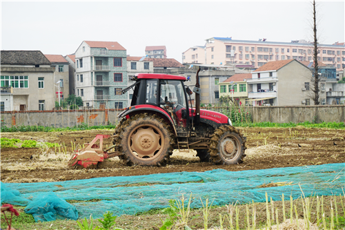 统一翻耕铺满秸秆粉末的田地