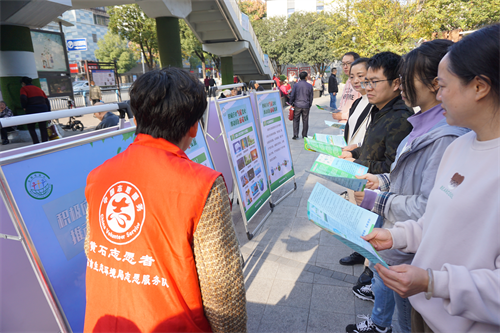 11月22日,黄石市生态环境局在胜阳港社区华夏城广场组织开展“关注气候环境变化 倡导绿色低碳生活”生态文明环保宣传进社区志愿活动,向社会公众倡导绿色低碳、健康文明的生活方式。
