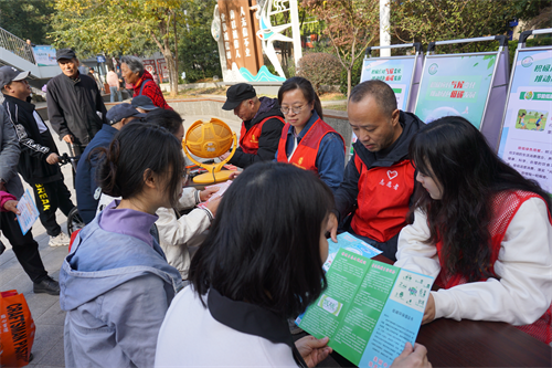 活动中,黄石市环境保护宣教中心的志愿者积极当好“宣传员”,引导社区公众观看环保宣传展板,同时以发放宣传手册、环保宣讲等方式向市民群众科普生态环境保护与绿色低碳生活的重要性,普及气候环境变化对人们造成的影响等知识,为公众带去了一堂生动“环保课”。