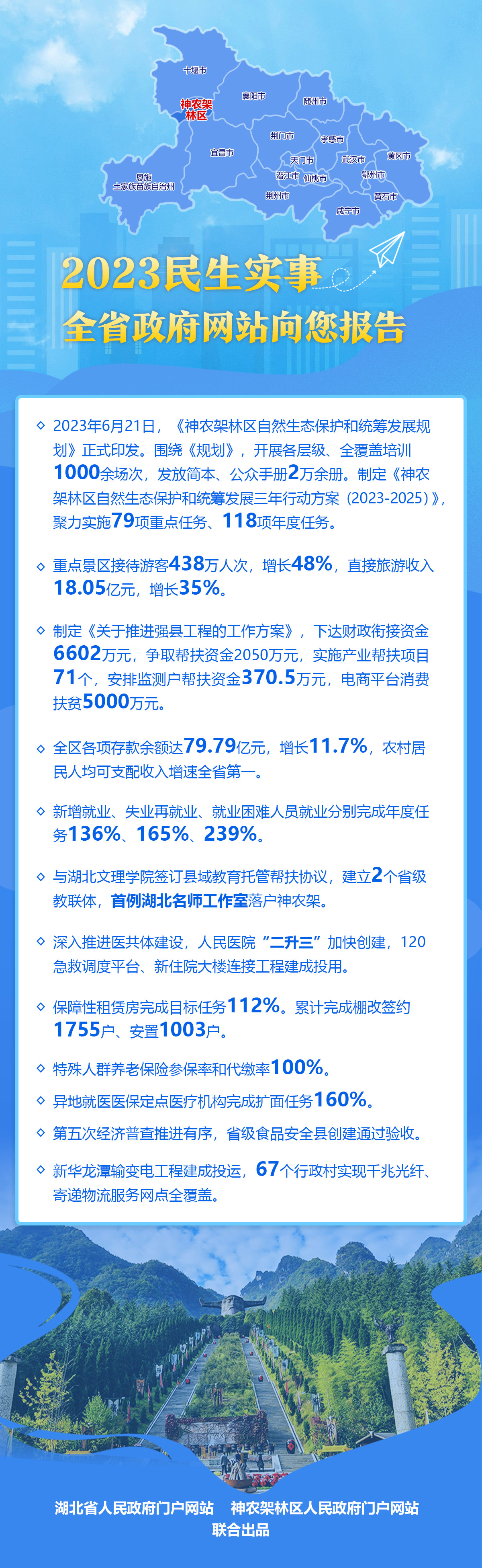 新增婴幼儿托位、建设冬暖夏凉温情教室、老年人居家适老化改造、兴建社区幸福食堂、修好通村公路、开通乡镇公交专线、增加城区停车位和新能源充电桩、改善医疗条件……近期,湖北各地召开的地方“两会”,陆续公布了2023年民生实事办理情况,全省政府网站将一一向您报告!让我们怀揣共同缔造美好生活的愿景,奔向更加“荆”彩的2024!