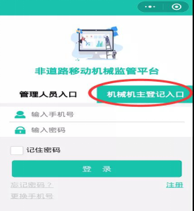 (2)按照“非道路移动机械监管平台”微信小程序软件指导进行注册、信息录入等。