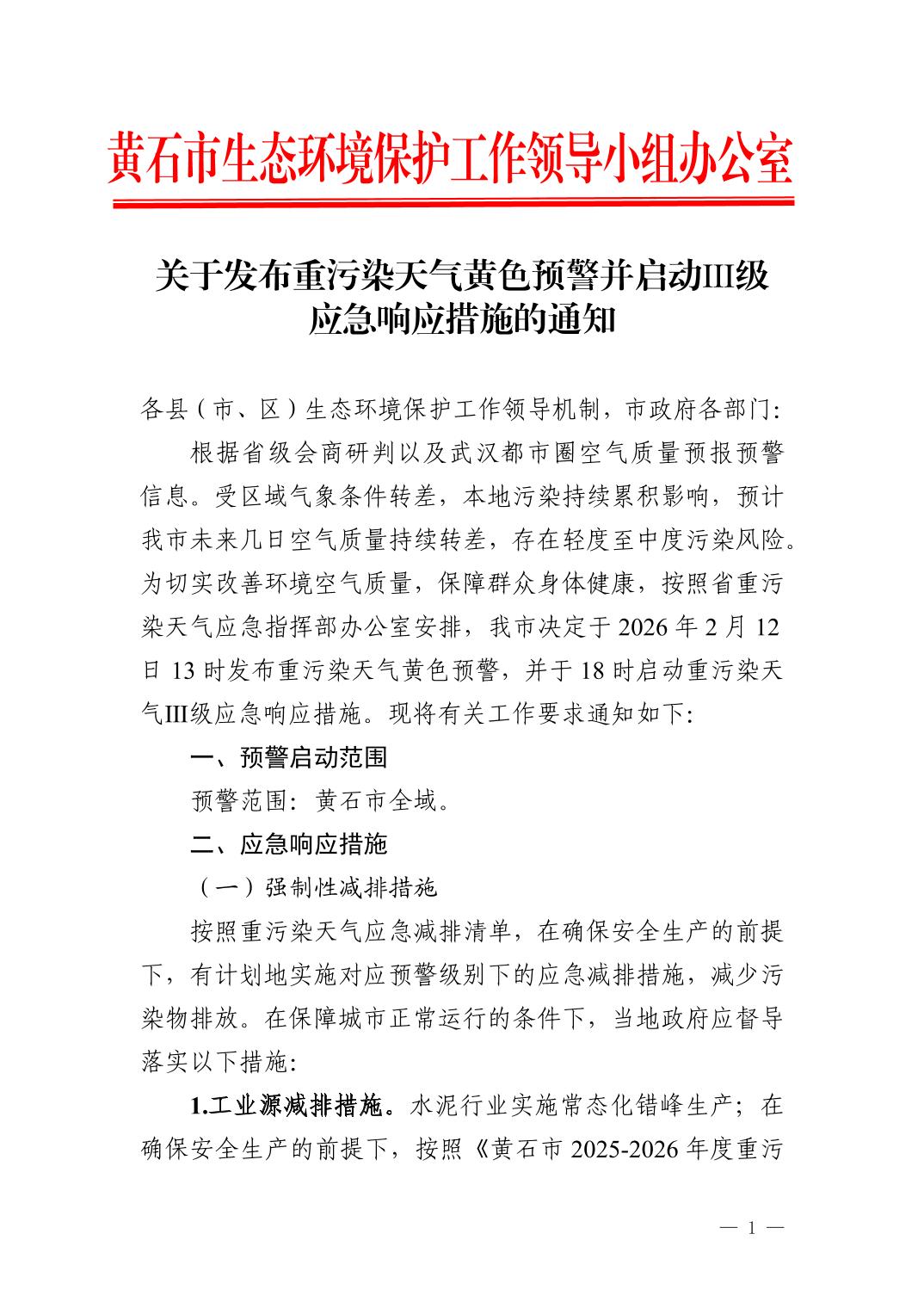 来源:黄石市生态环境局 时间:2026-02-12